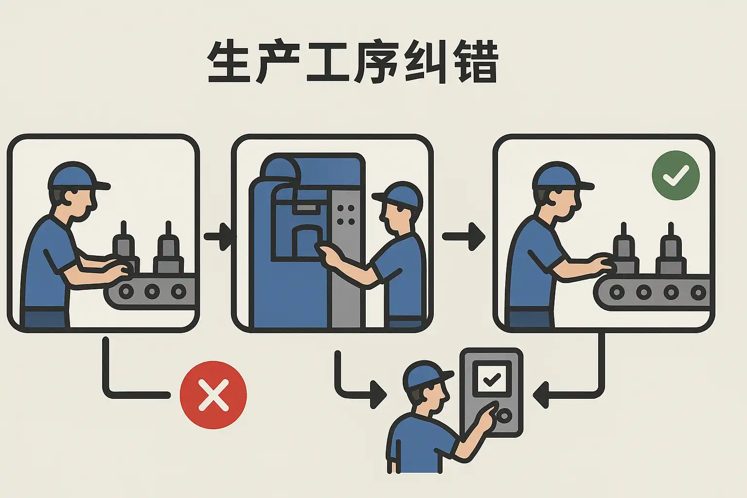 哪些工具或技术可以辅助生产工序的错误纠正?