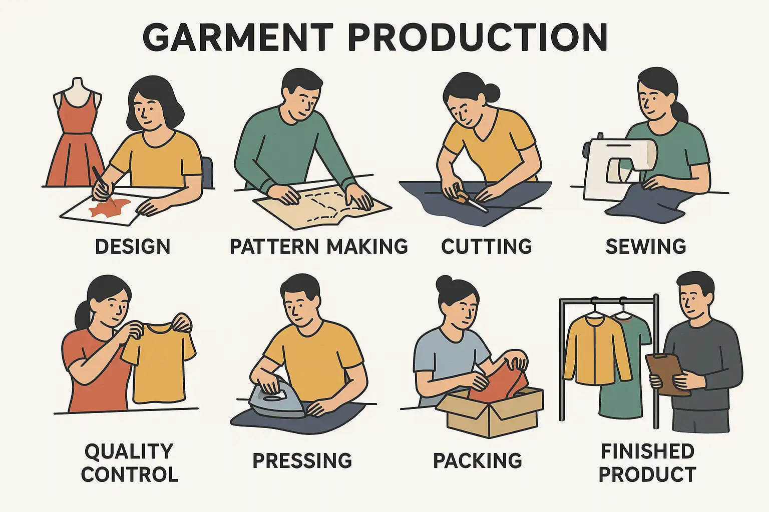 通过这些环节,服装从设计图纸逐步转化为消费者手中的成品,实现了高效且标准化的生产。