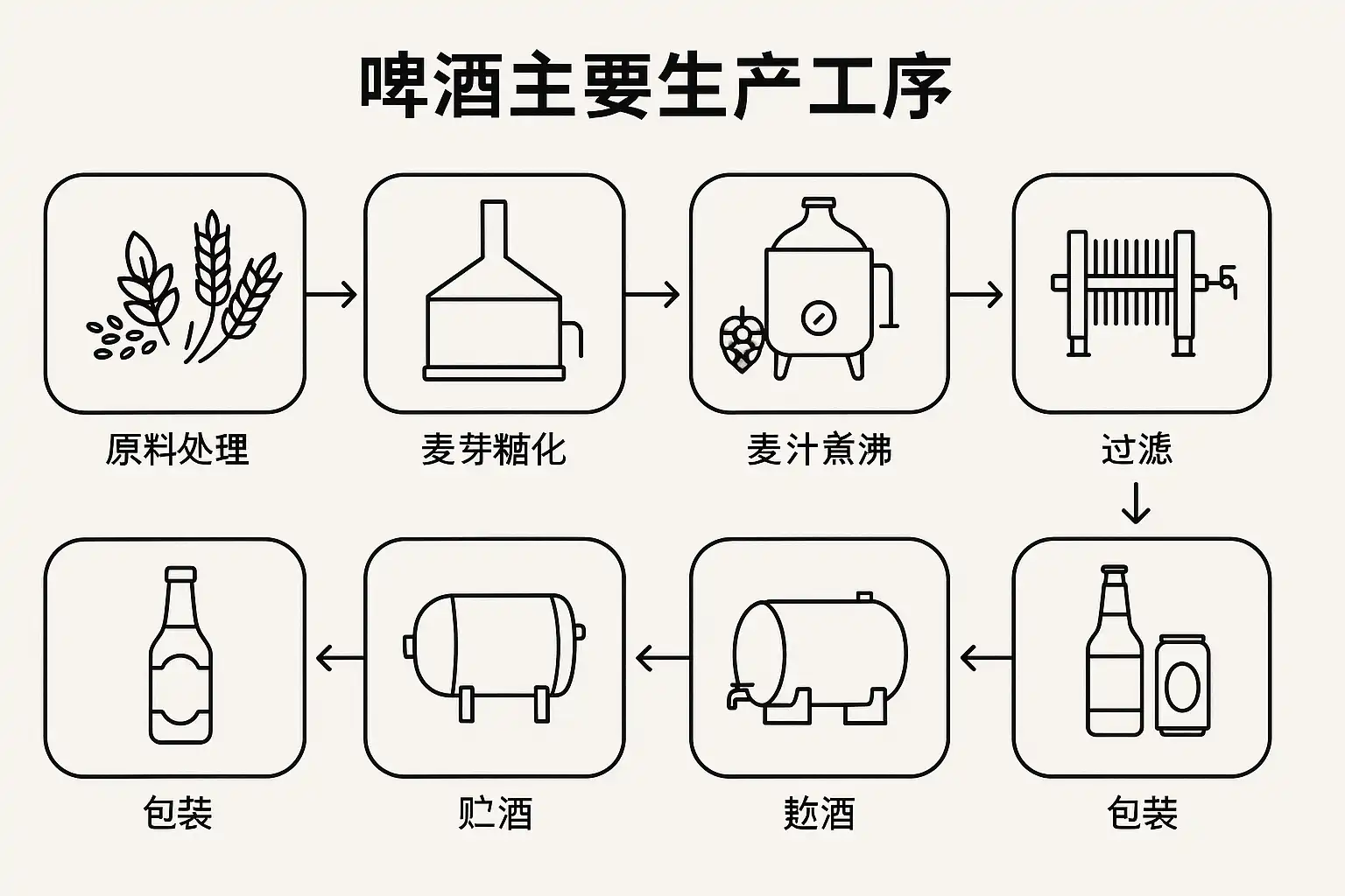 啤酒主要生产工序详解,啤酒酿造流程有哪些步骤?