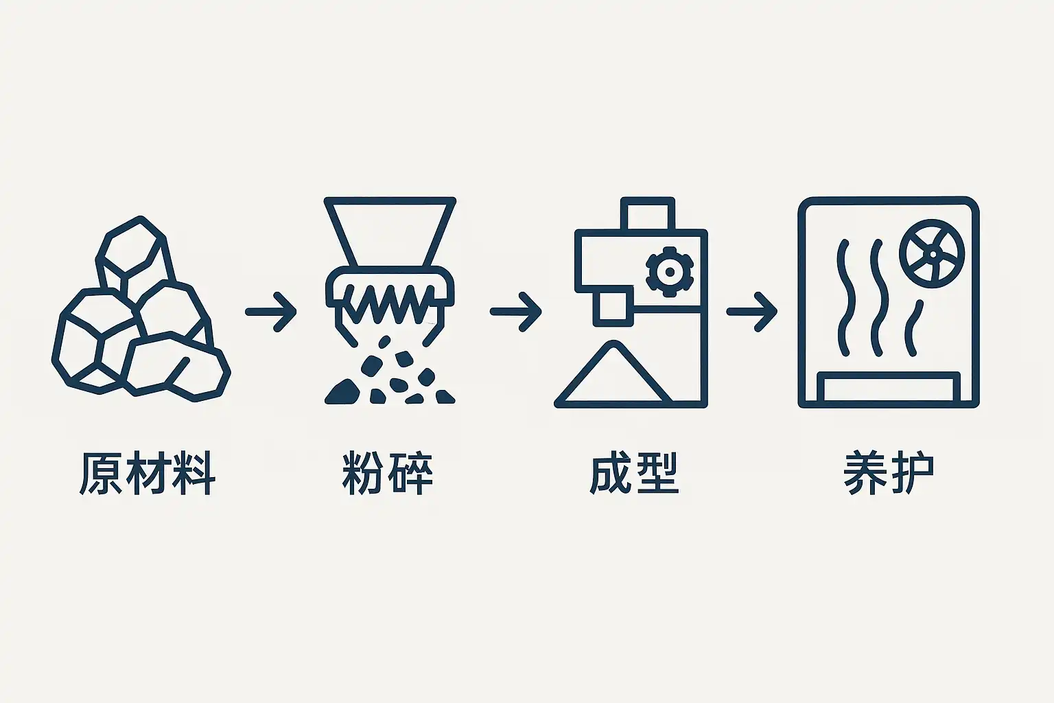 | 原材料准备 | 采集符合要求的岩石或工业副产品 |