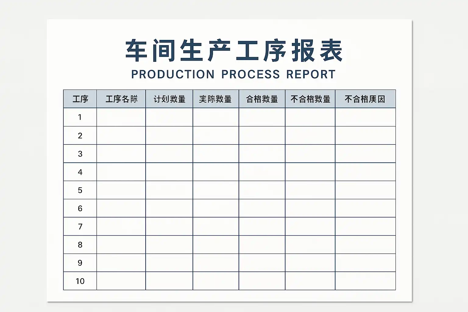 - 明确每一份工序报表应包含哪些核心字段(如:工序编号、操作员姓名、开始结束时间、不良品数量等)。