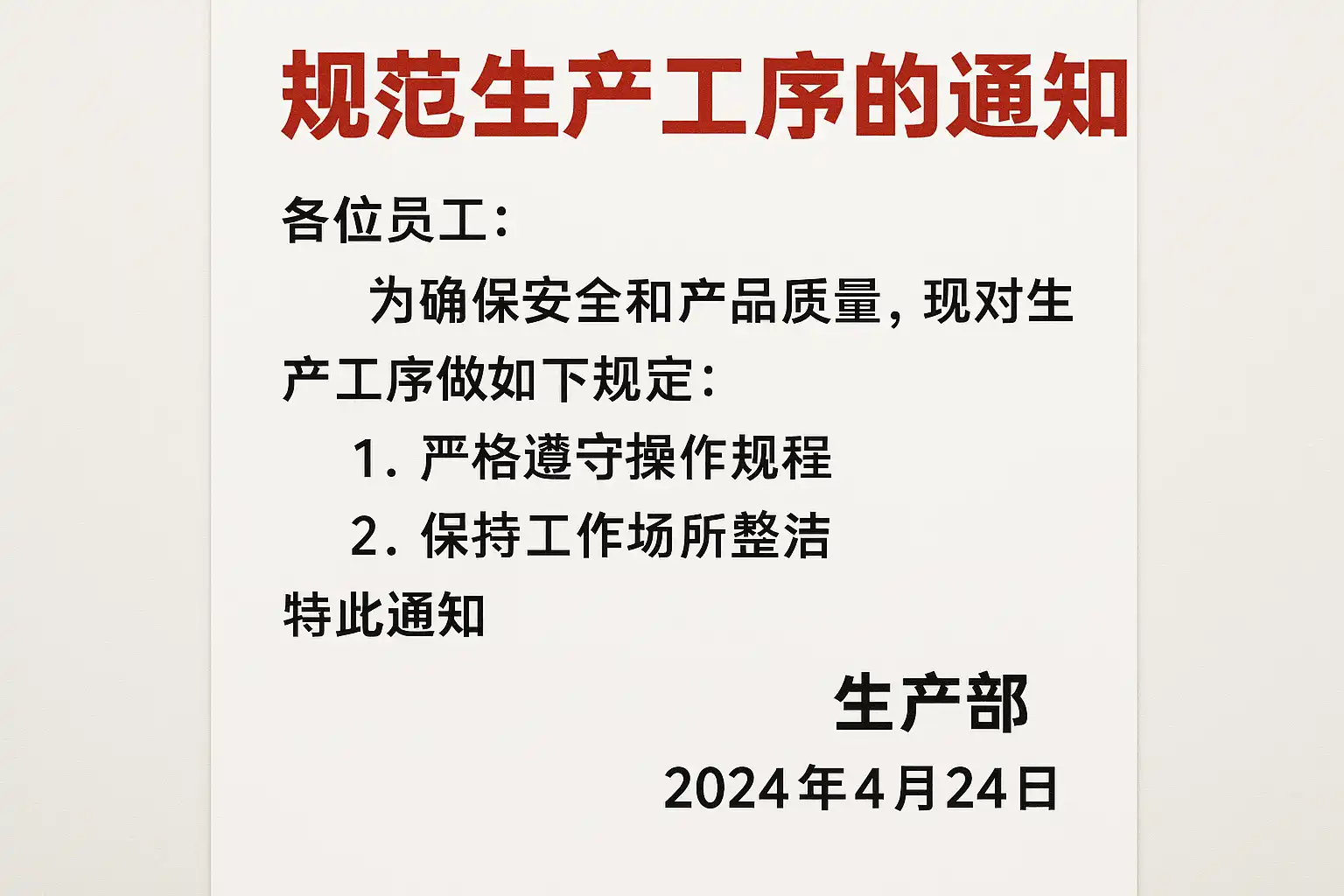 《规范生产工序通知,如何确保企业质量安全?》