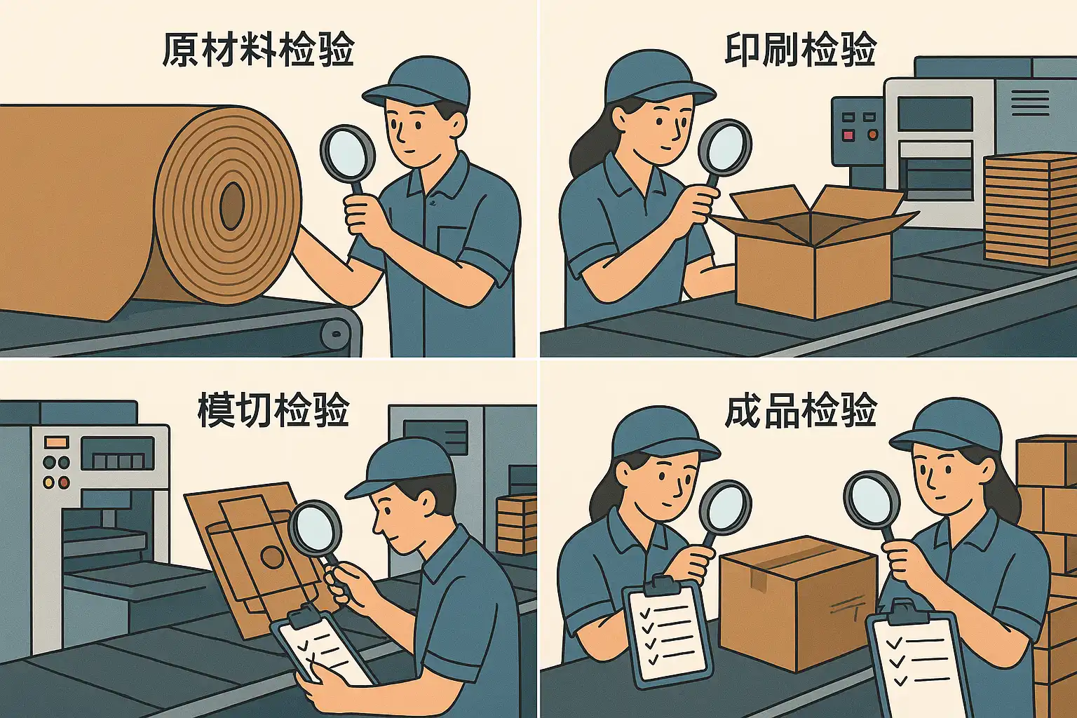 我在了解纸箱生产的质量控制时,想知道具体有哪些检验环节?不同工序的质量检测重点是什么?