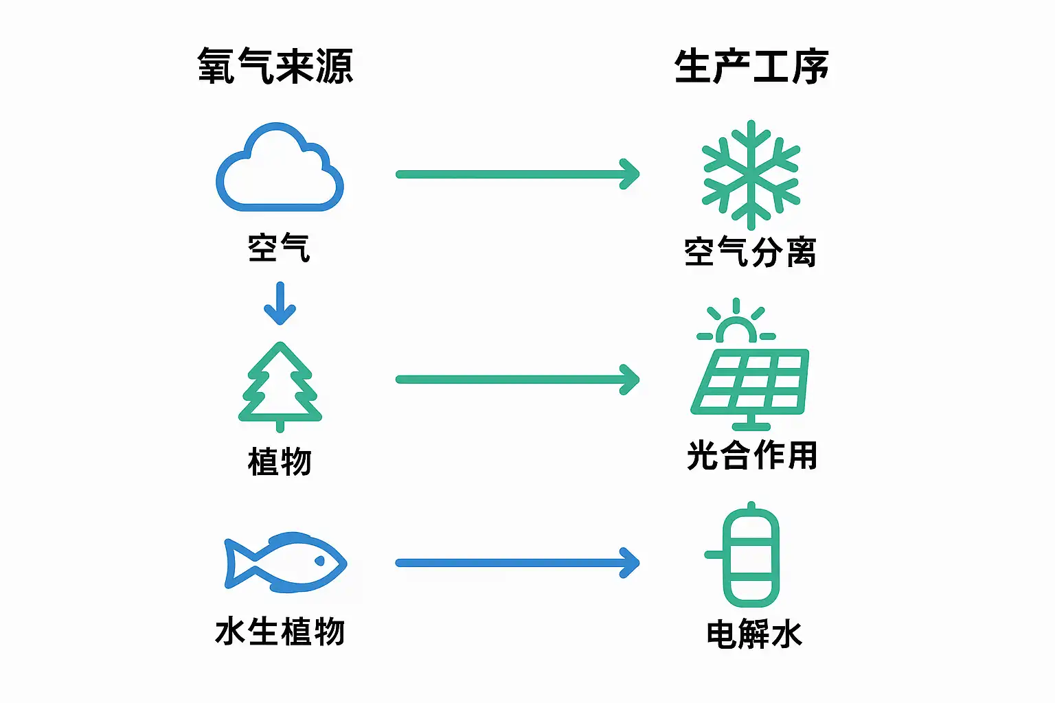 我想了解氧气的主要来源都包括哪些?市面上常见的氧气供应方式有什么区别,哪种更适合工业或医疗用途?