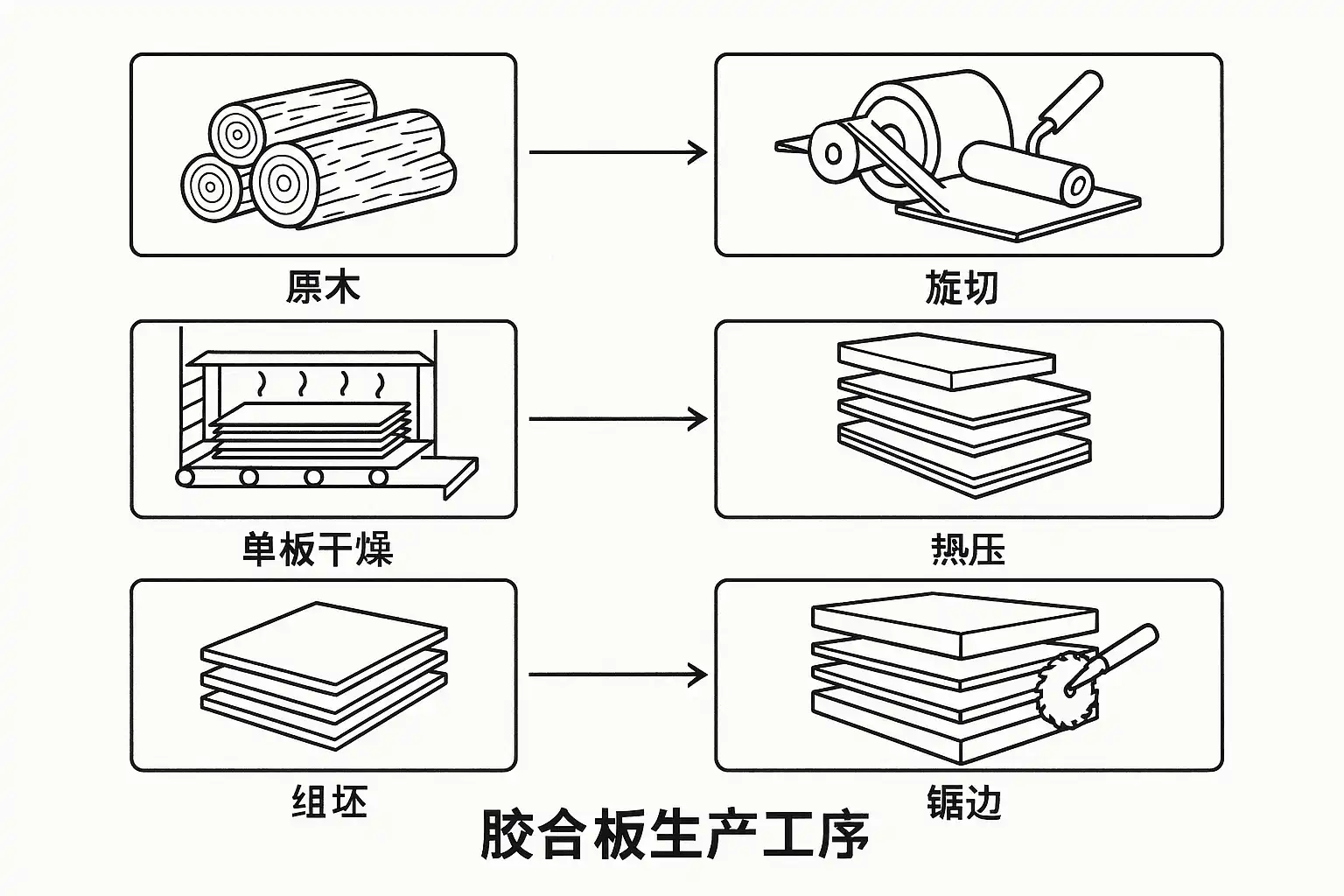 胶合板制造是一个涵盖多道复杂工序的连续作业过程,每一步都直接关联到成品品质及最终产量。