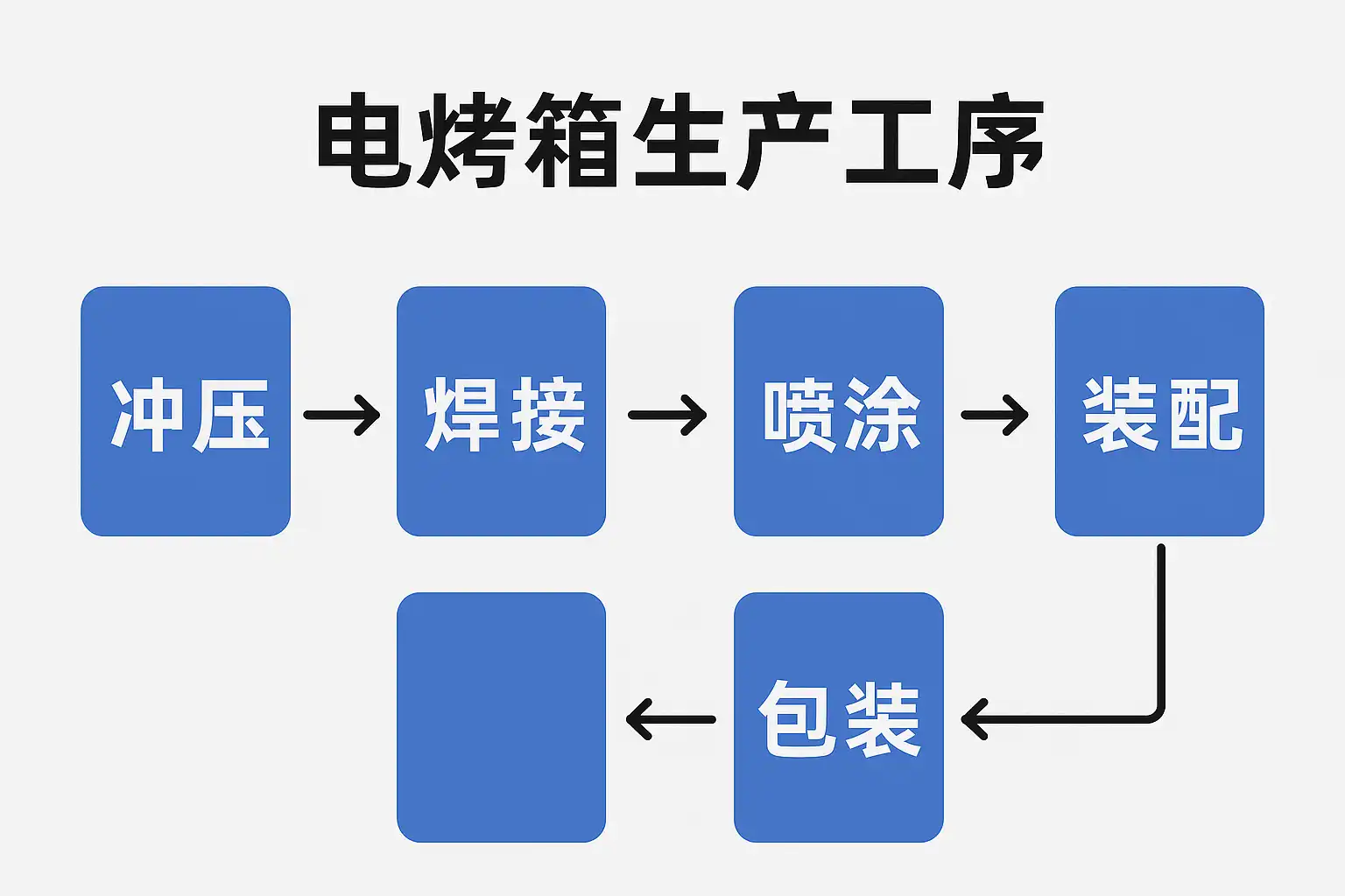 我对电烤箱的生产流程不太了解,想知道整个生产过程中有哪些关键步骤?每个环节的作用是什么?
