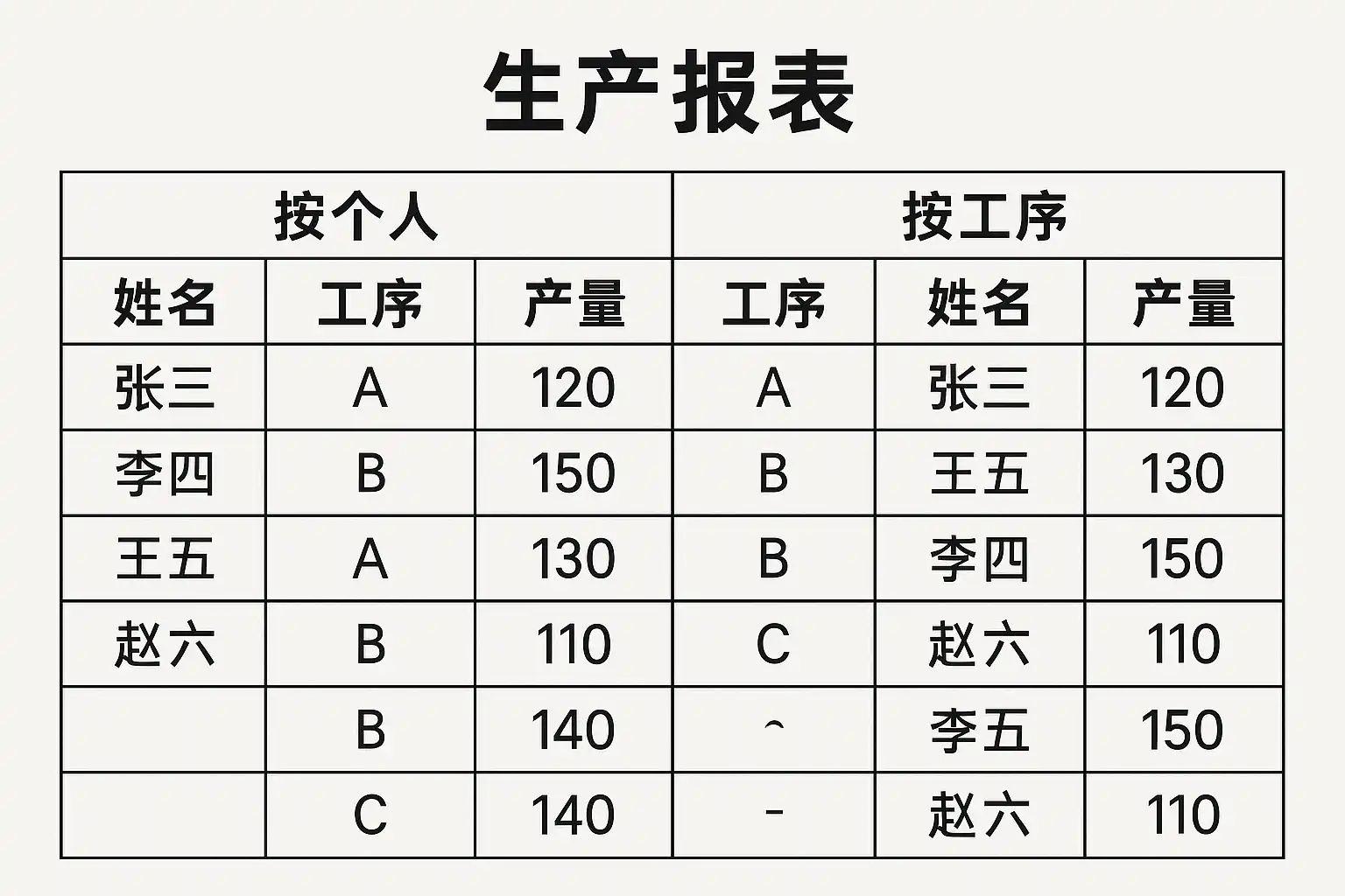 在现代制造业中,将生产数据按“个人”和“工序”两个维度进行拆分,可以实现以下目标: