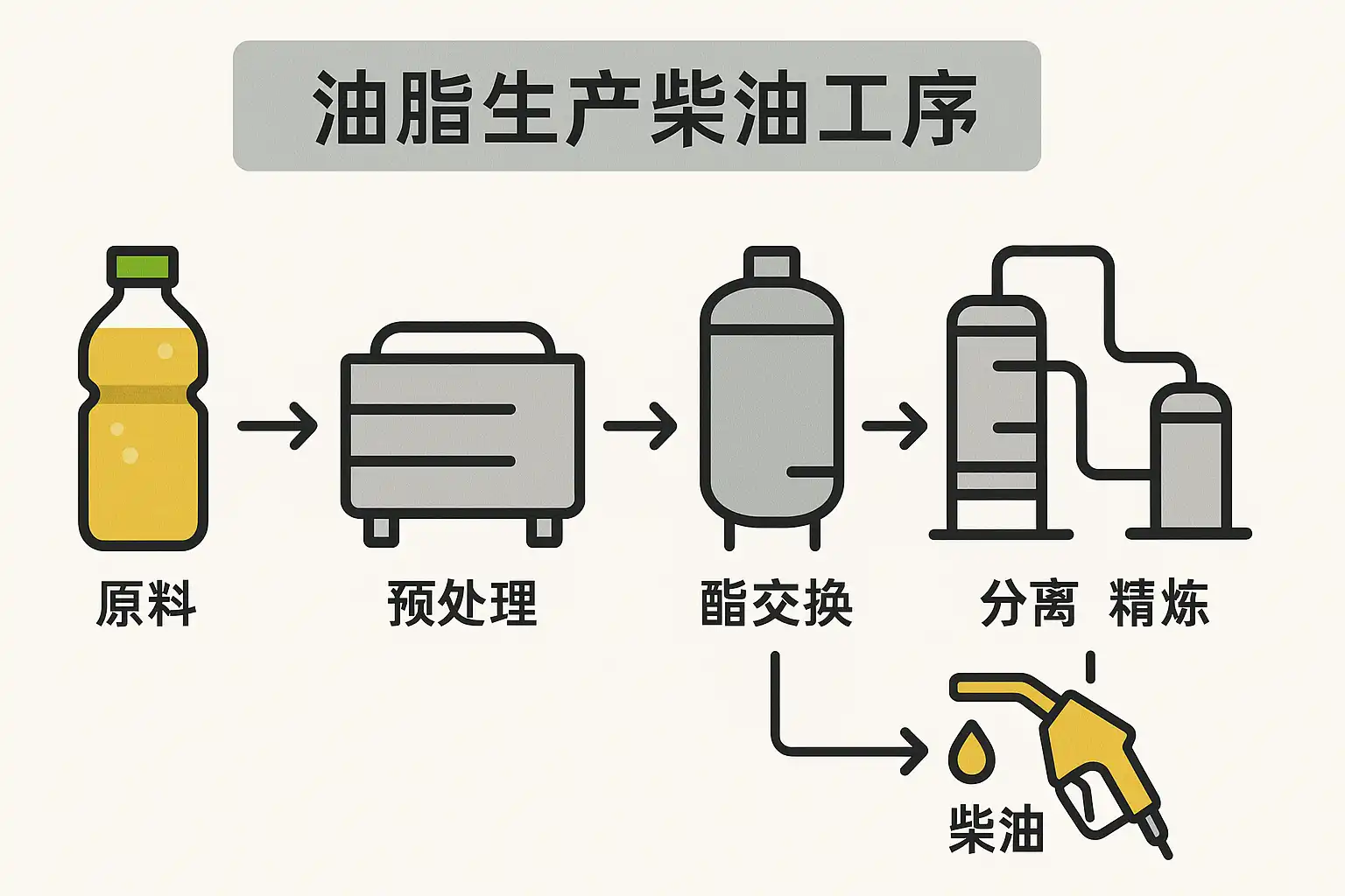 我最近在研究油脂生产柴油的工序,发现流程挺复杂的,不太清楚每个关键步骤具体是怎么安排的?想了解清楚油脂生产柴油工序设置的整体框架和核心环节。