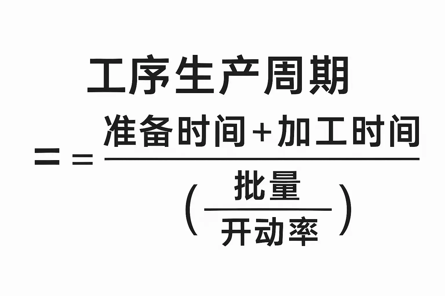 综合公式: 工序生产周期 = 单件加工时间 × 批量 + 等待/停滞时间 + 运输/切换时间