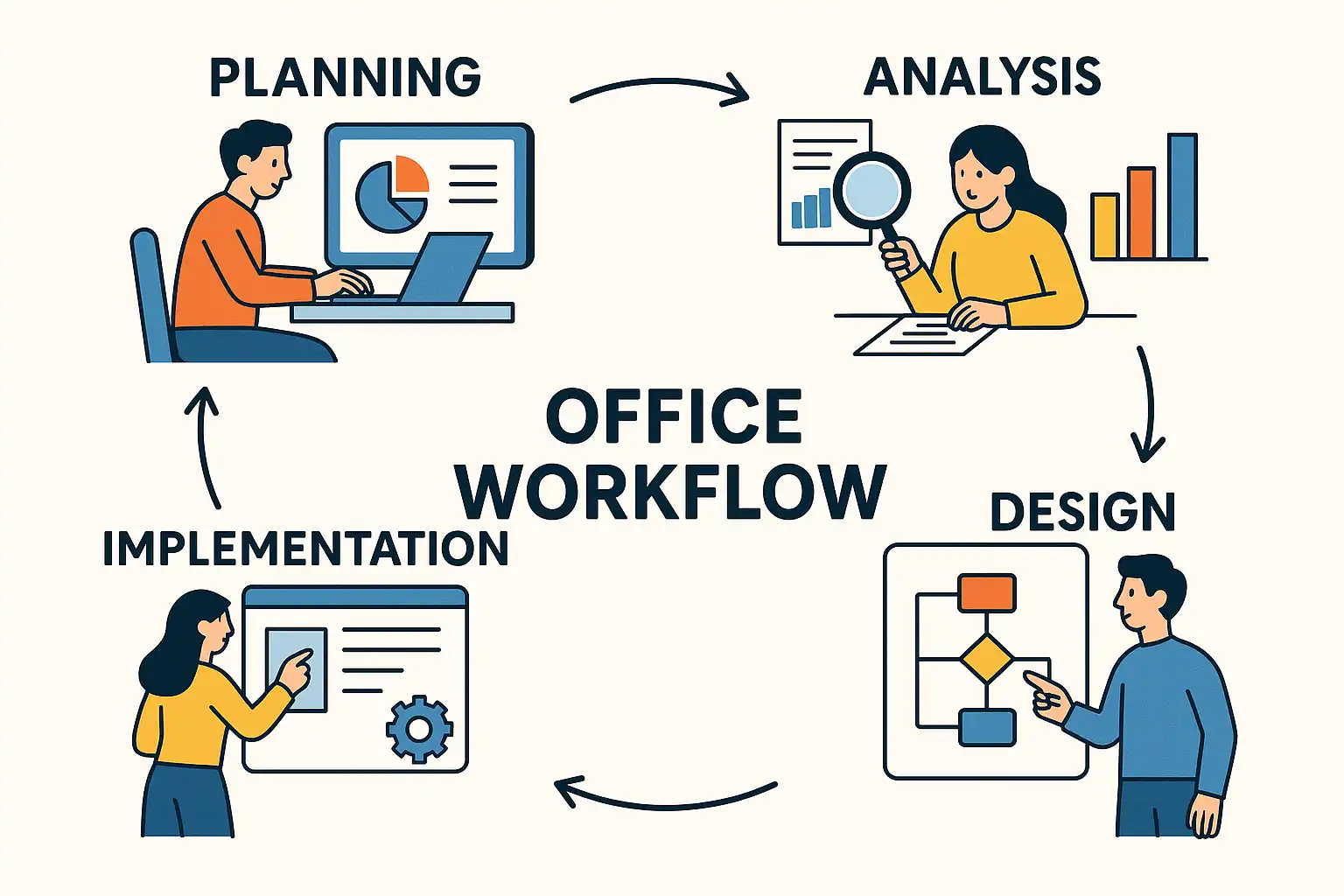 - 流程梳理:通过流程图工具(如Visio、ProcessOn)将现有办公流程绘制出来,明确各环节。