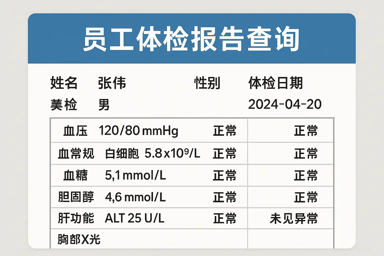 | 查询入口 | 体检报告自助查询 | 按员工编号/姓名检索 |