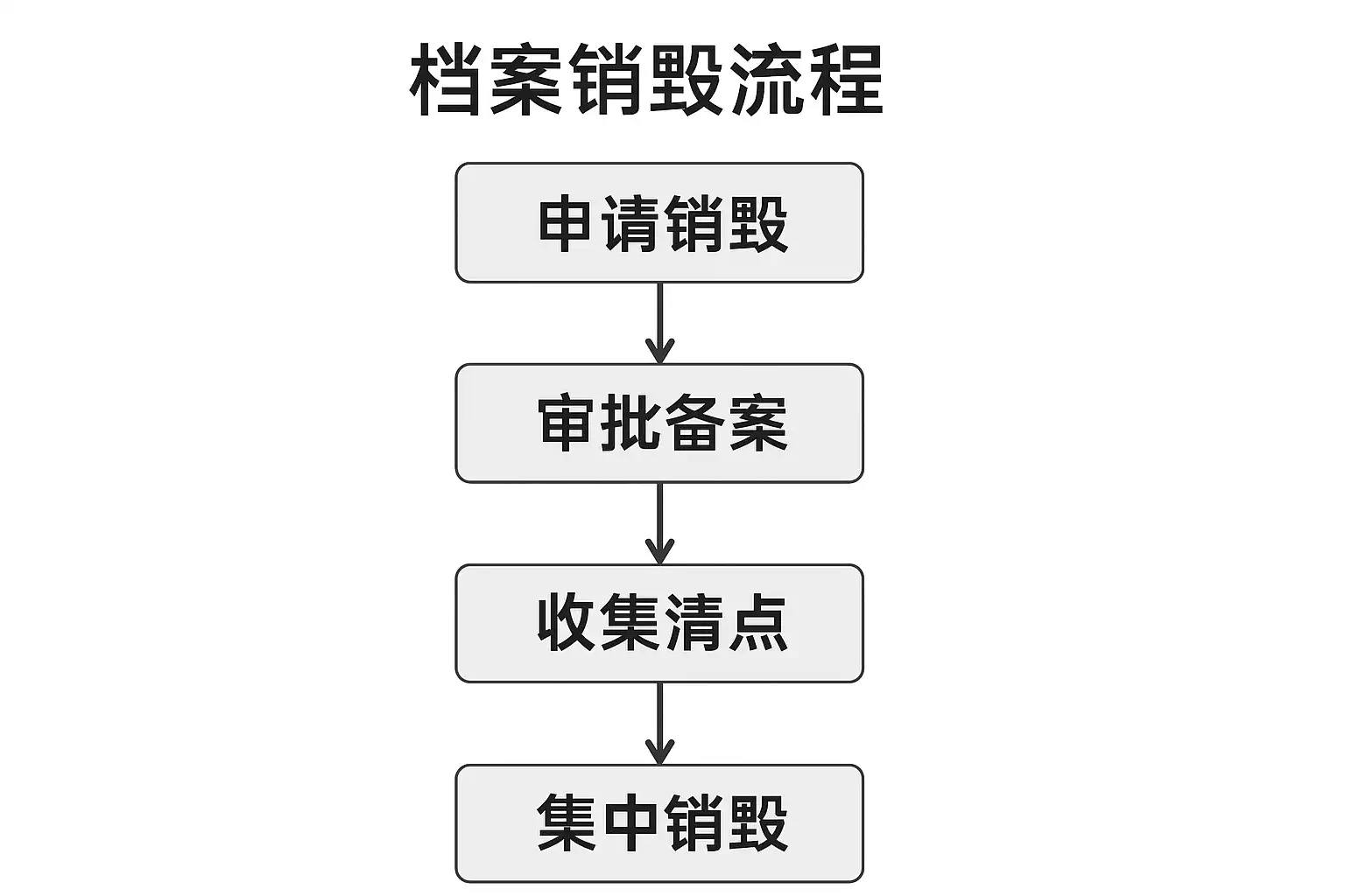 - 审核审批:由档案管理部门或主管领导审核销毁申请,确保符合保密和保管期限要求。