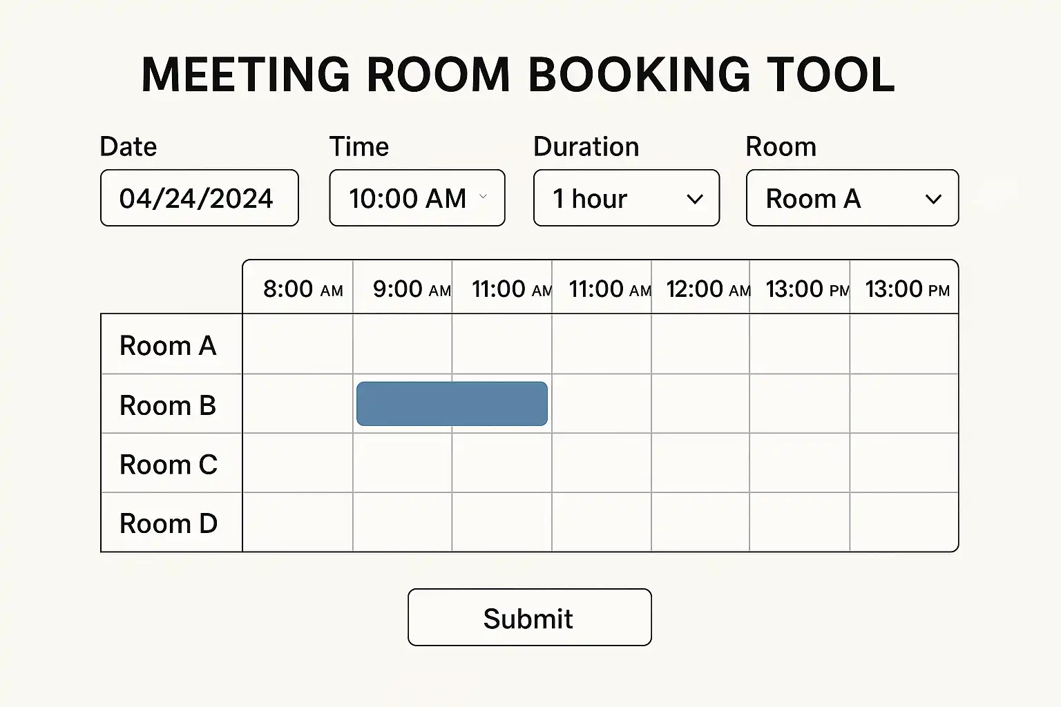 - 冲突检测:系统自动检查同一时间段内是否有多个会议室预约请求,防止重复预订。例如,如果A部门预订了9点到10点的会议室,系统会阻止B部门在同一时间段预订同一间会议室。