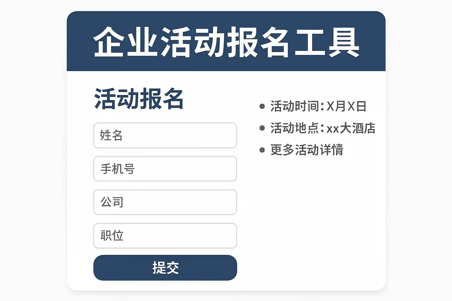 - 明确企业活动报名需求(活动类型、参与人数、所需字段等)。