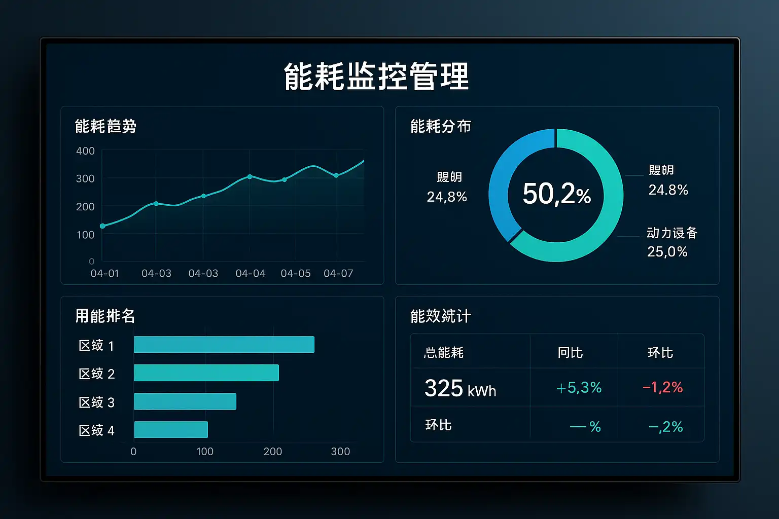 | 动态分析 | 数据可视化平台、AI分析模型 | 实时监控能耗趋势与异常,发现节能空间,实现告警与预测 |