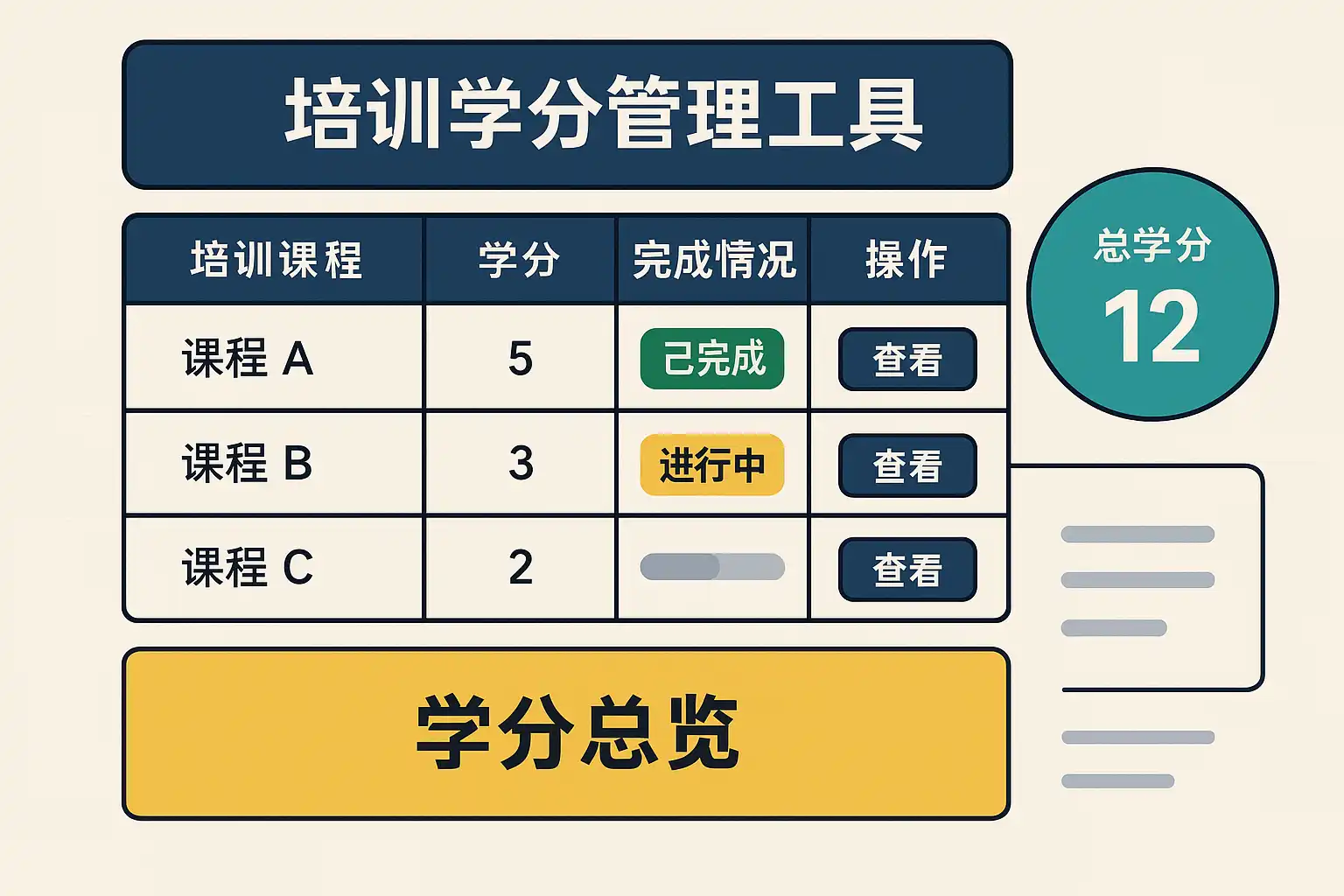 - 自动学分统计:能否自动汇总多门课程、多期培训的学分数据。