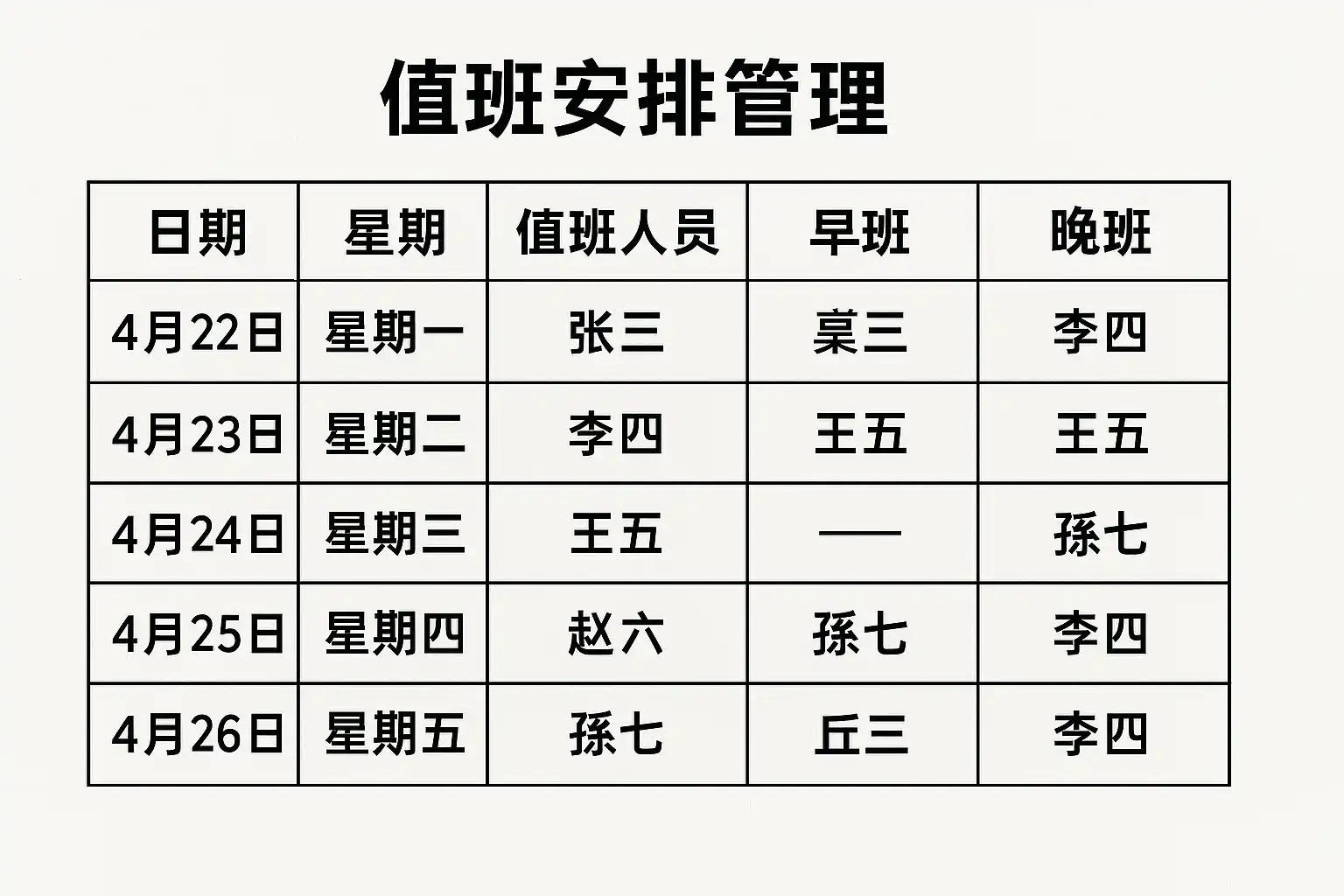 - 值班效果评估:结合值班日志、绩效数据,评估排班合理性。