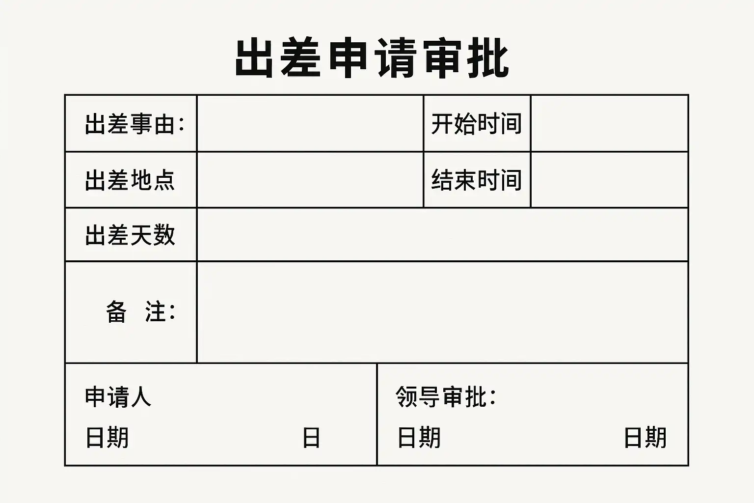 - 部门初审:部门负责人审核出差必要性与预算合理性。