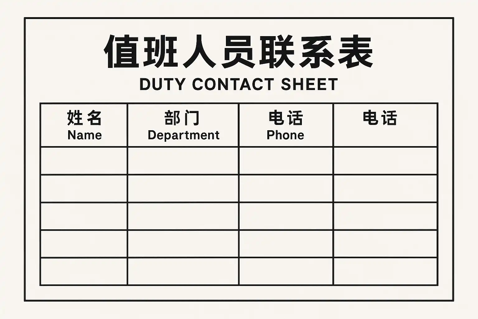 - 使用数字化工具(如Excel、Google Sheets或专门的值班管理软件),便于实时更新和共享。