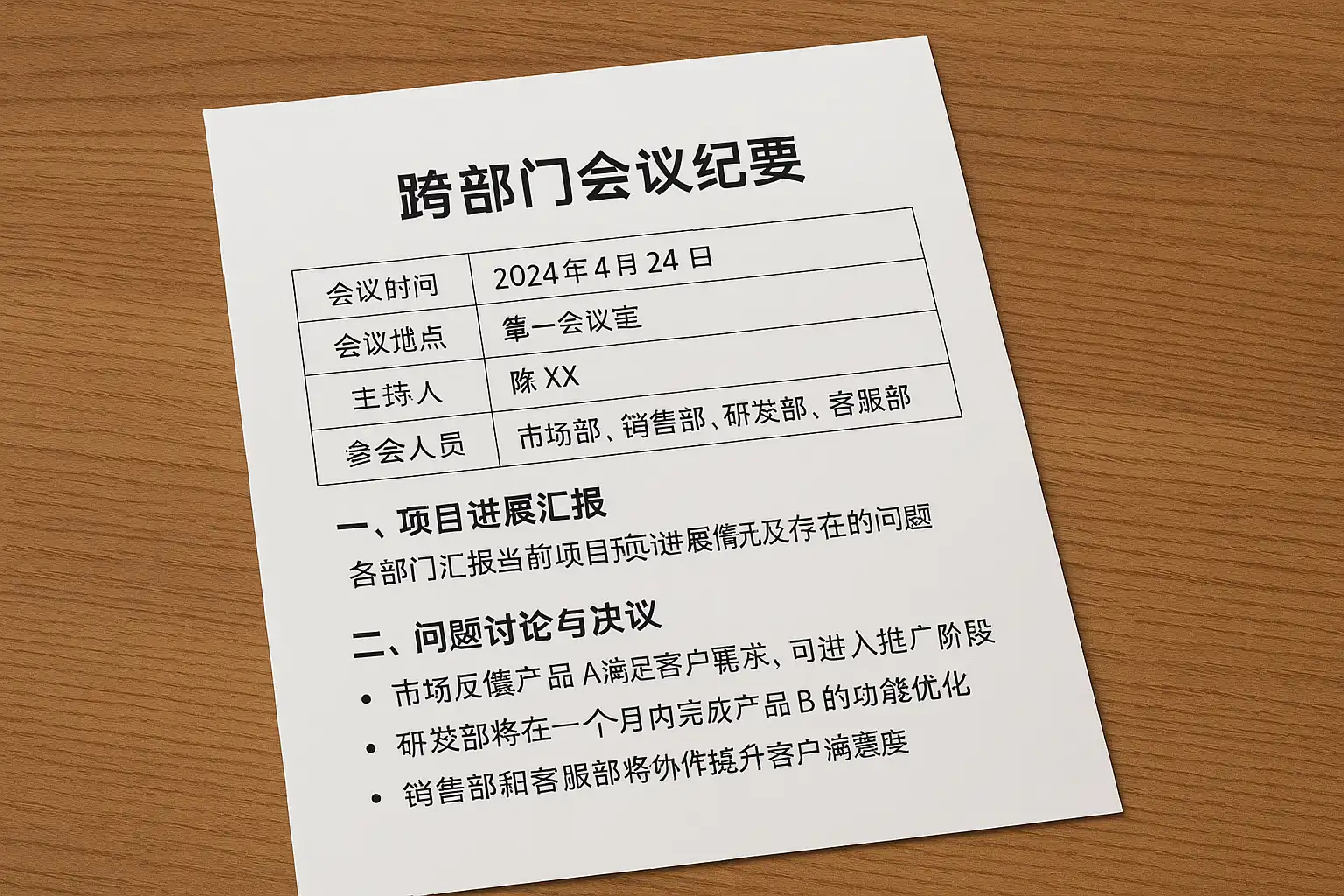 《跨部门会议纪要如何高效记录?掌握关键技巧提升团队协作》