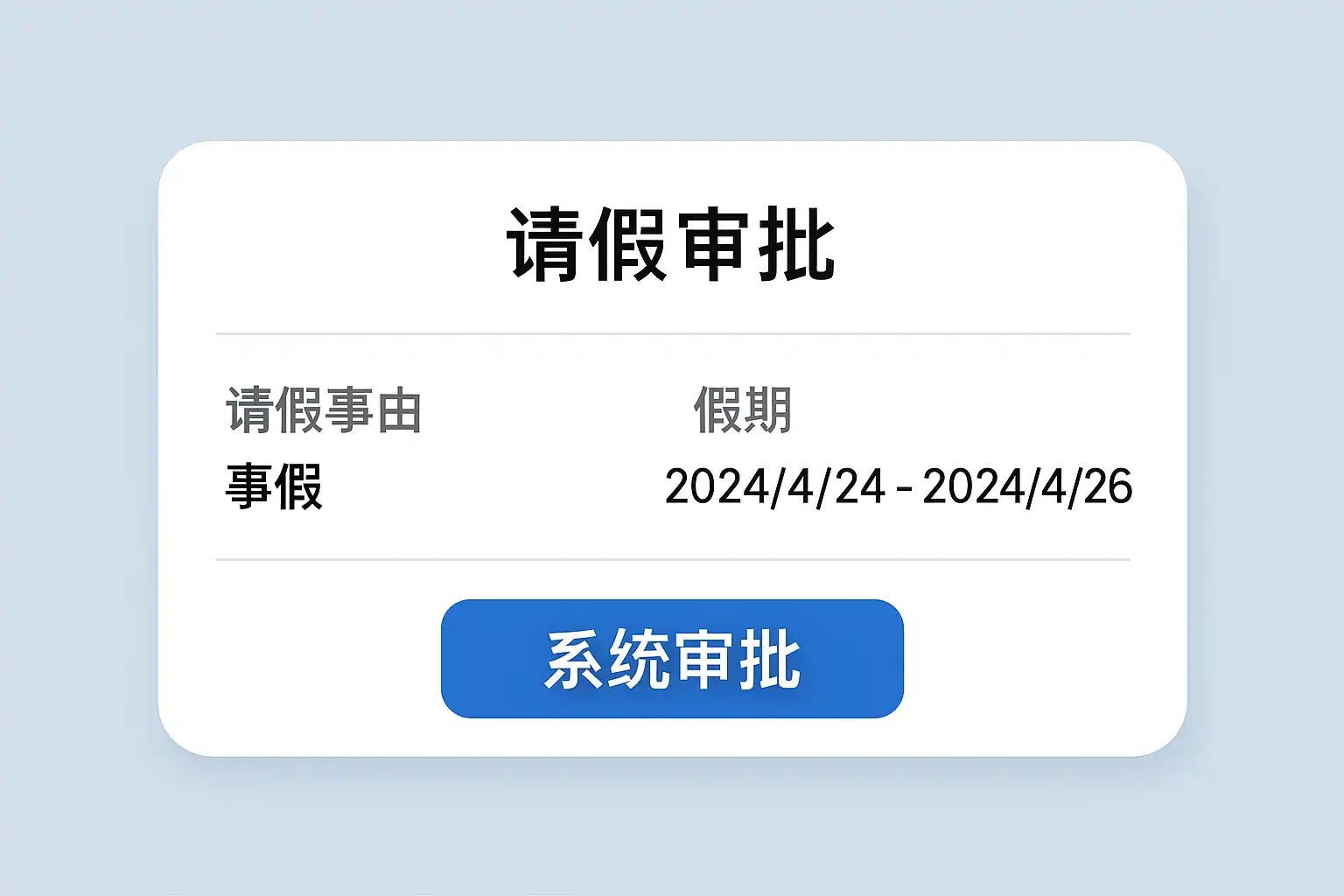 - 配置字段(请假类型、时间、事由等)