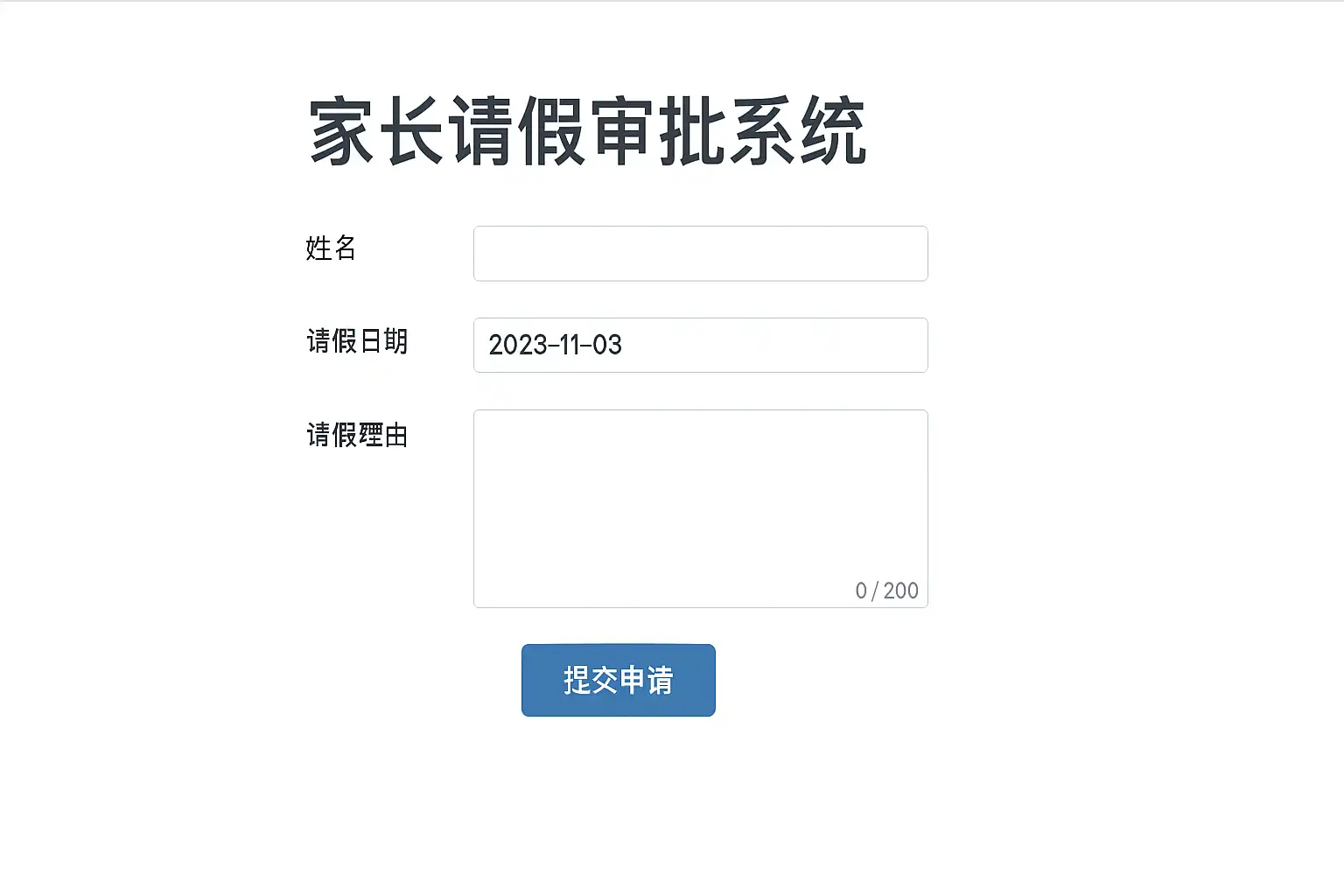 - 请假申请提交:家长填写请假原因、时间、学生信息等。