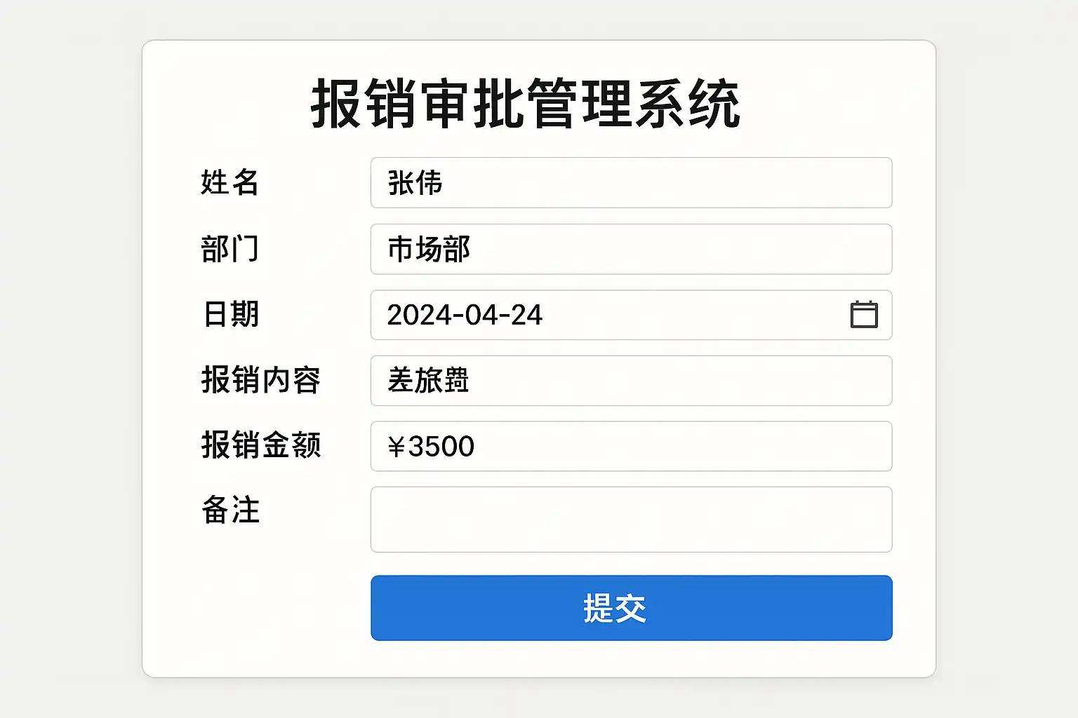 | 报销类型 | 差旅 | 下拉选择,便于统计 |