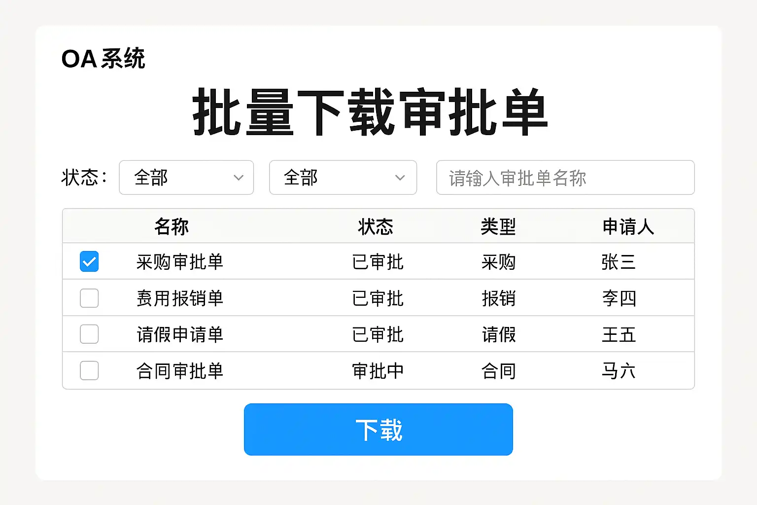 如何通过筛选条件提升OA系统批量下载审批单的效率?
