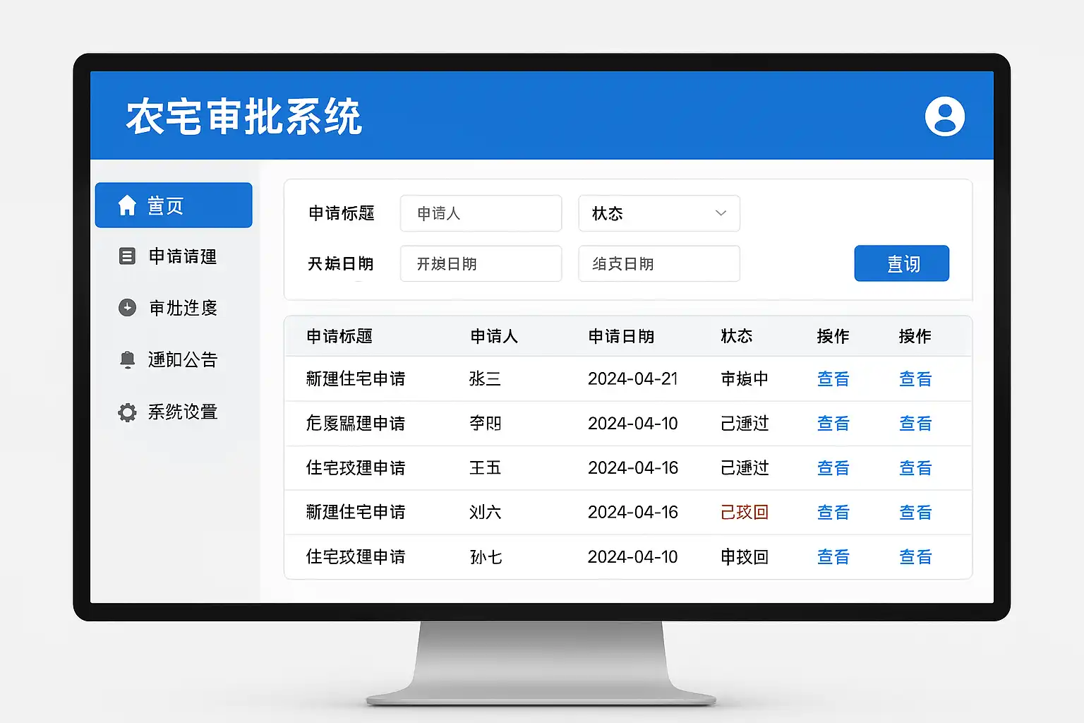 农宅审批系统设计注重用户体验,操作界面简洁直观,主要特点包括: