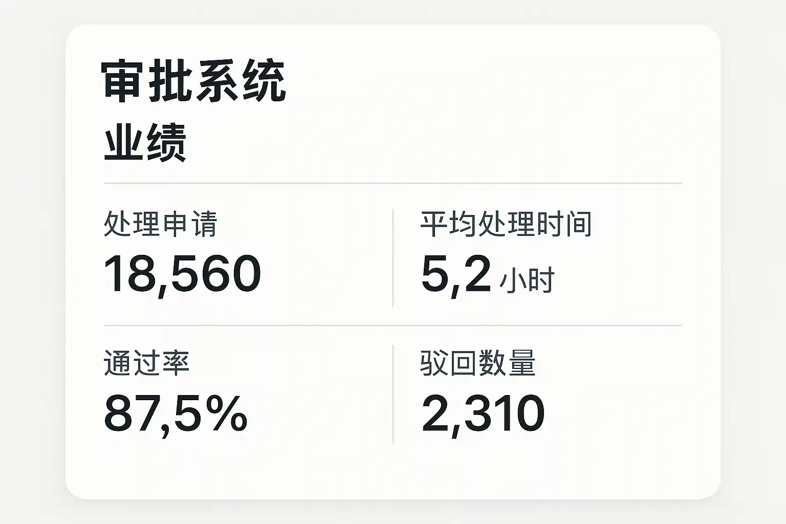 | 时效性指标 | 平均审批时长、节点通过率 | 结合业务实际,设定合理目标 |