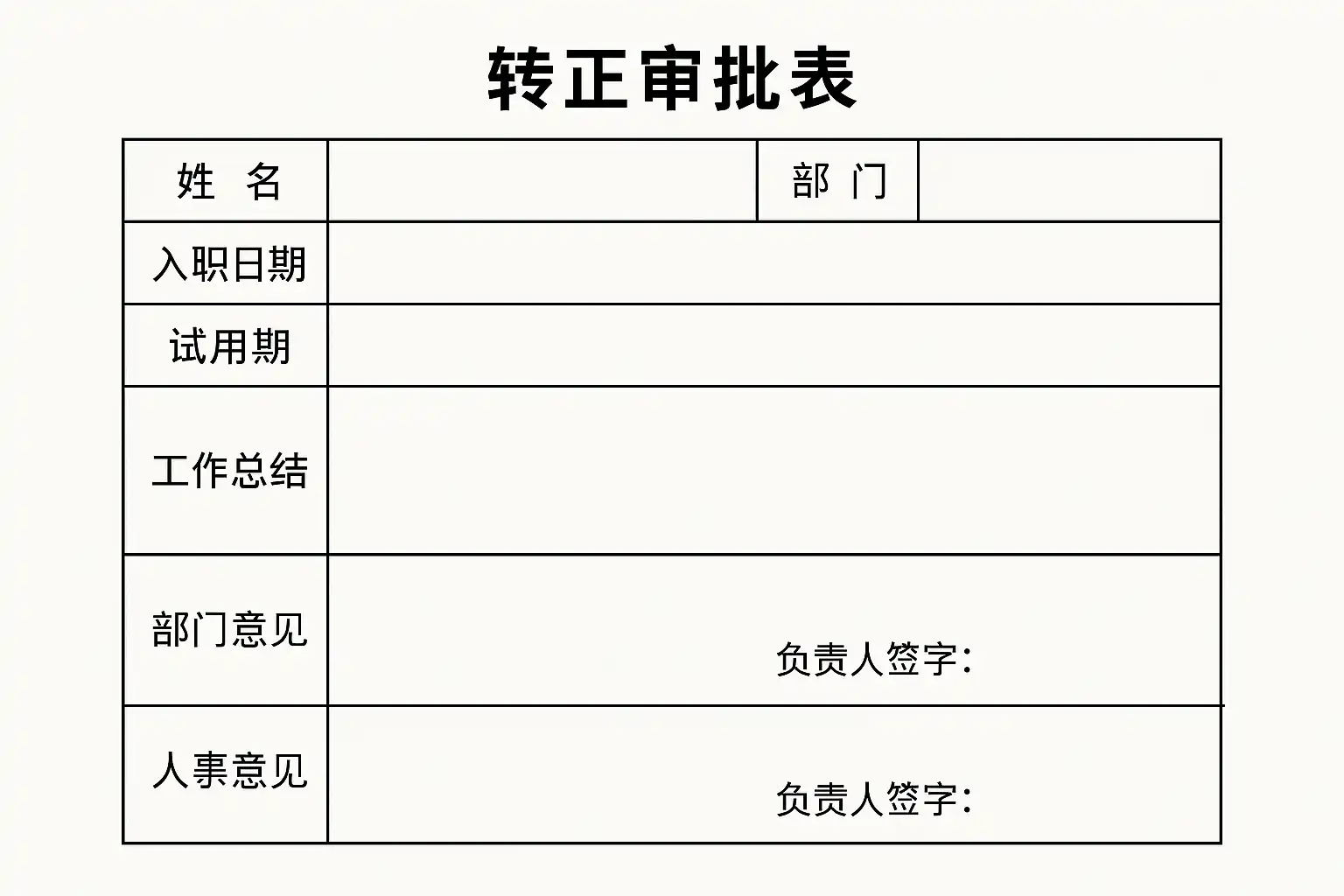 以某公司标准转正审批表为例: