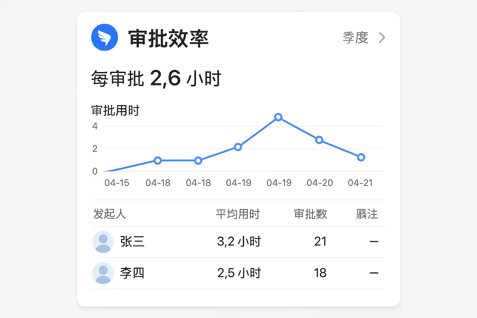 - 每月、每季度导出审批效率报表,分析趋势。