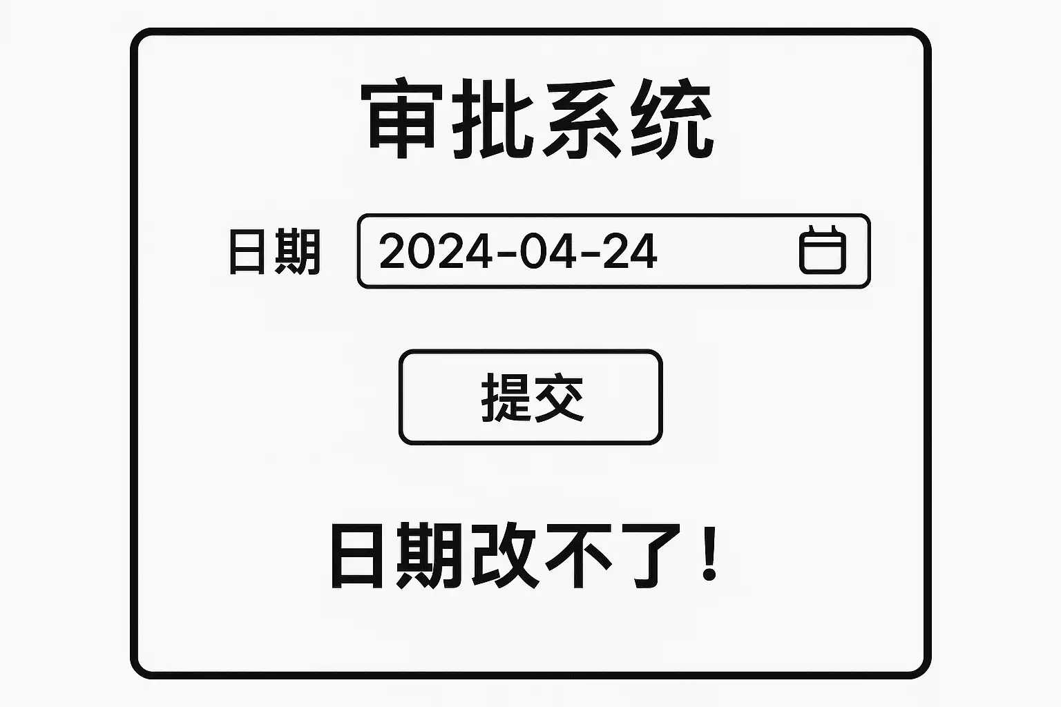 - 系统设计:部分审批系统为了符合合规要求,设计为日期字段只读。