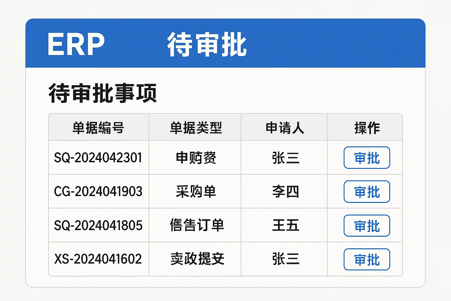| 实时数据同步 | 审批结果实时同步ERP系统,数据不丢失 |
