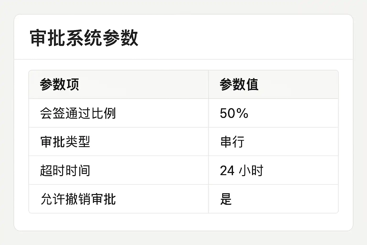 这些参数共同决定了审批流的灵活性、安全性与适用性。了解各类参数的具体意义,是精准设置和优化审批系统的基础。