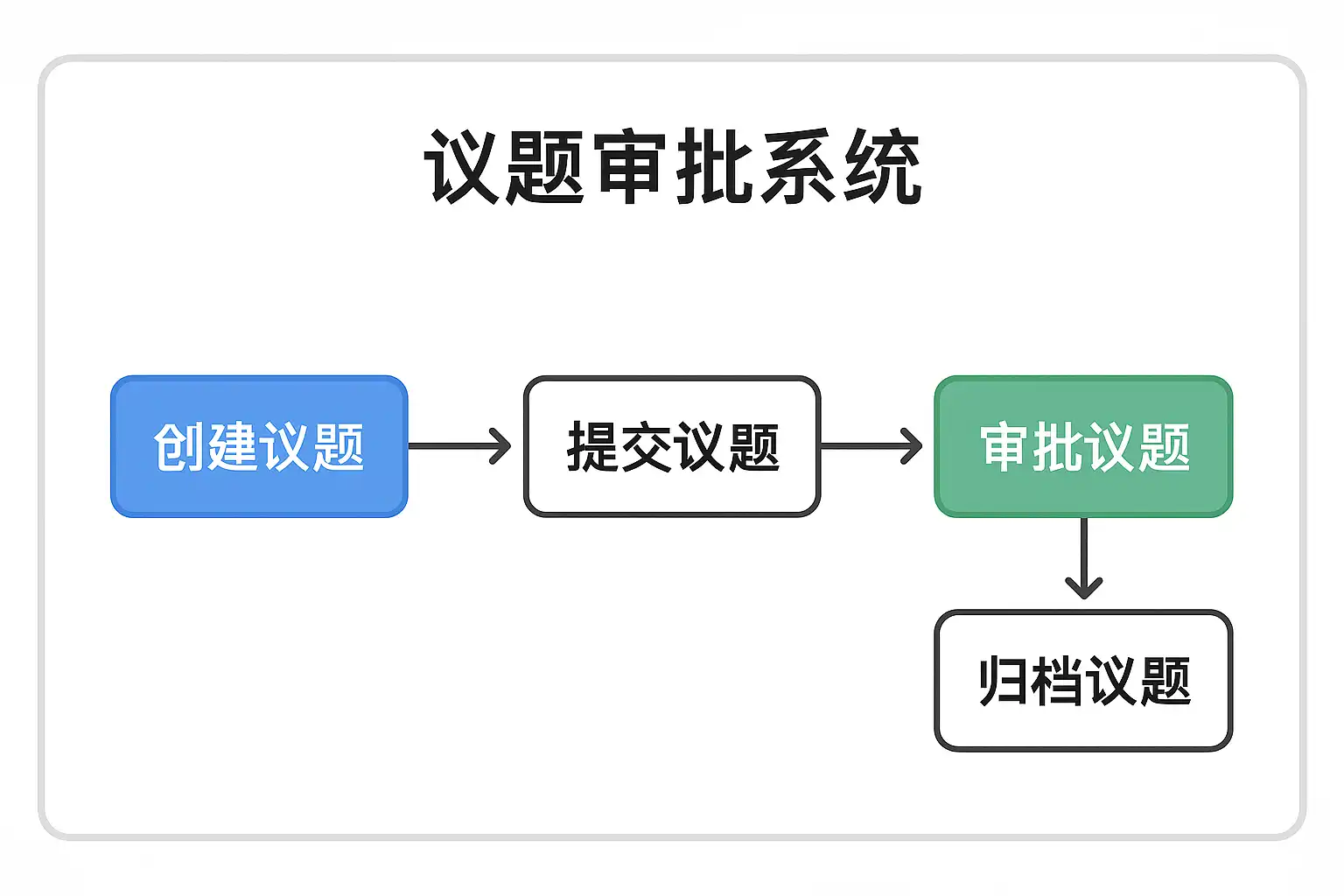 背景说明: 议题审批涉及多部门协作,流程不清会导致信息滞后、责任不明。通过流程梳理与优化,能有效提升审批效率,为系统自动化打下坚实基础。