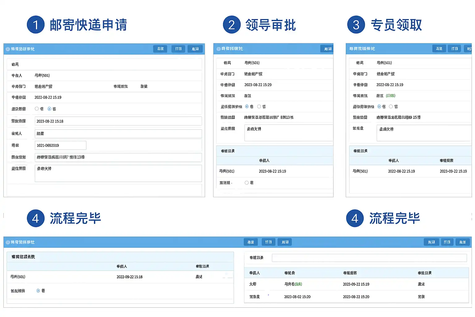 - 快递安排:审批通过后,相关人员根据审批结果安排快递发出。