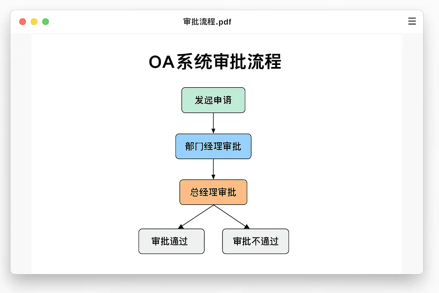 | 打印为PDF | 打开审批流程,打印选择PDF设备 | 无需额外软件,兼容性强 | 所有系统均适用 |