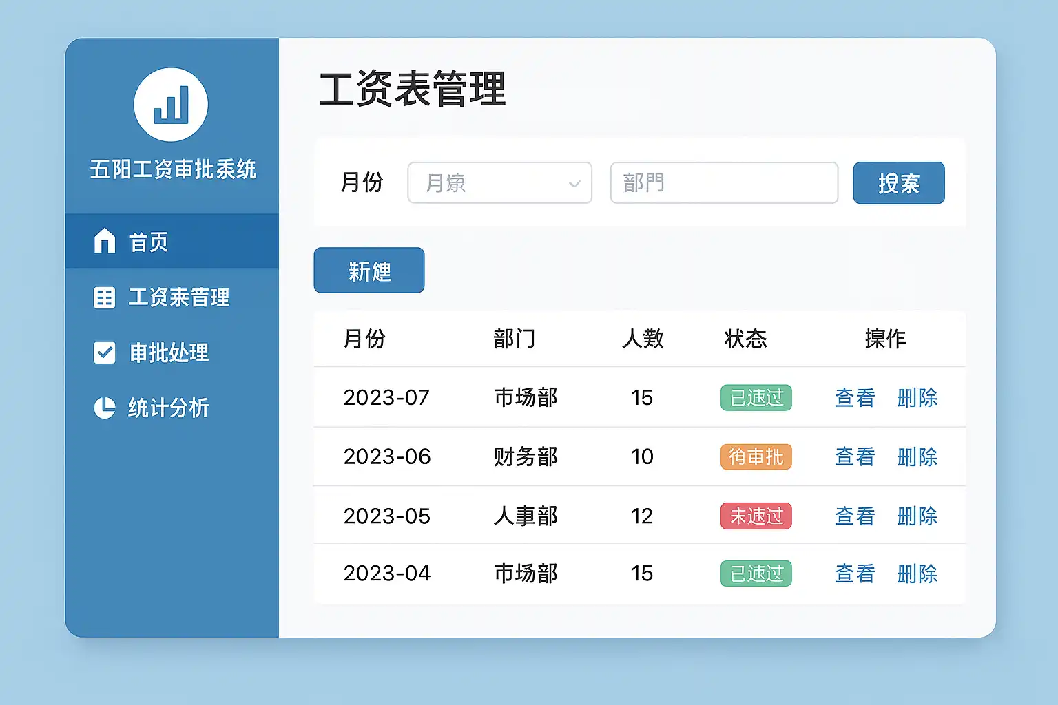 五阳工资审批系统注重用户体验,界面简洁直观: