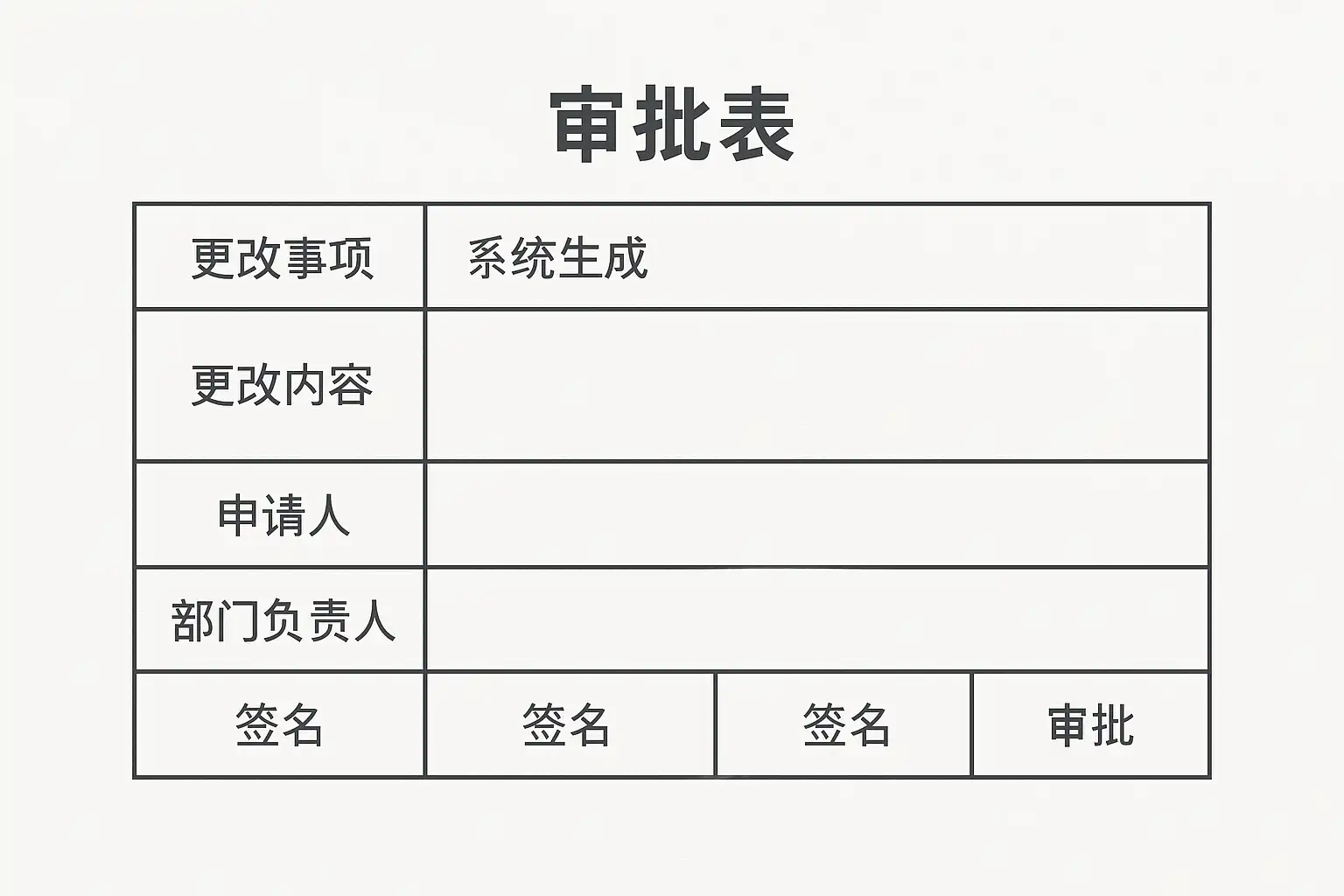 - 制定审批表更改标准操作流程(SOP),规范更改步骤。