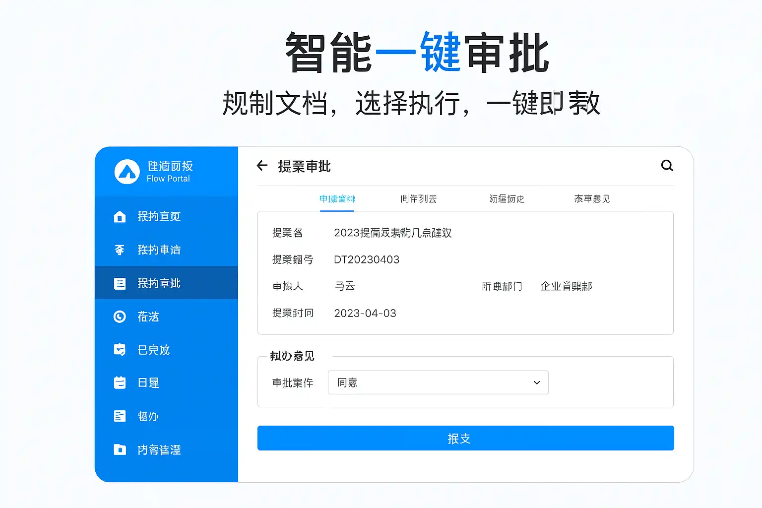 | 流程自动化 | 审批流根据预设规则自动流转,无需人工干预。 |