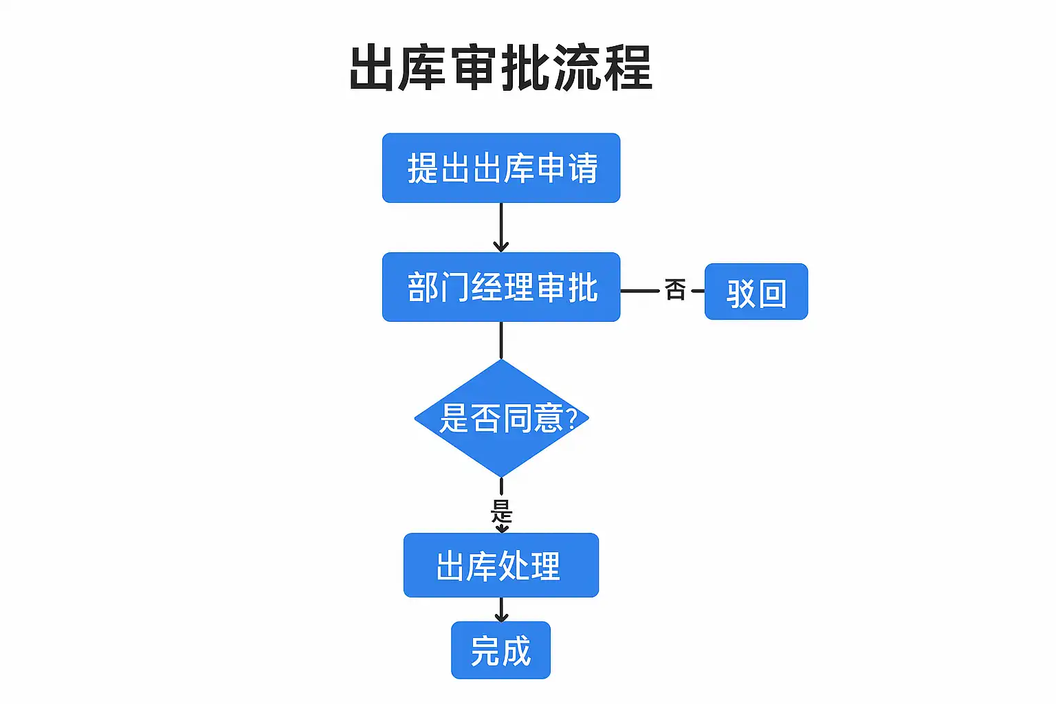 | 节点(Node) | 流程中的一个操作或决策点 | “出库申请提交”就是一个节点,代表申请开始 |