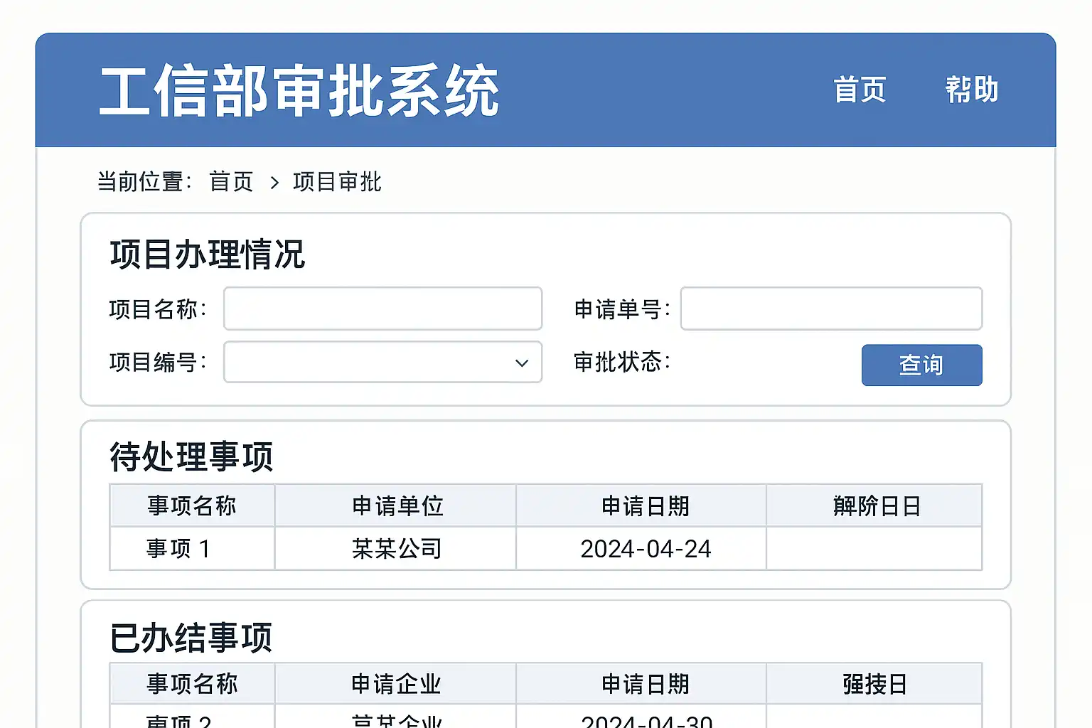 工信部审批系统是工业和信息化部为实现政务审批一体化、规范化、信息化而开发的业务管理平台。该系统主要服务于企业、个人及政府部门,涵盖企业资质审批、项目备案、许可证申报等多个场景。其核心优势如下: