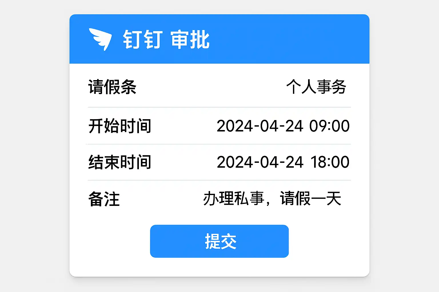 钉钉作为主流的企业协作平台,其请假审批流程标准而清晰。以下是假条审批的基础步骤: