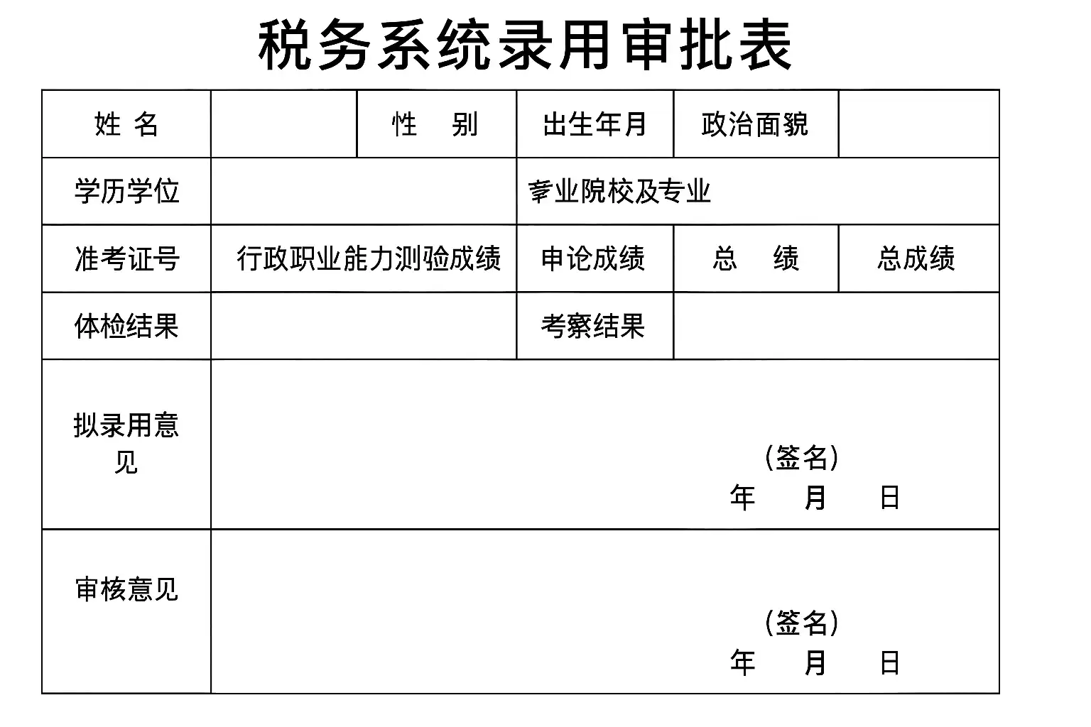 - 录用审批意见规范填写:必须体现审批流程和结果,建议参考税务机关的标准模板。