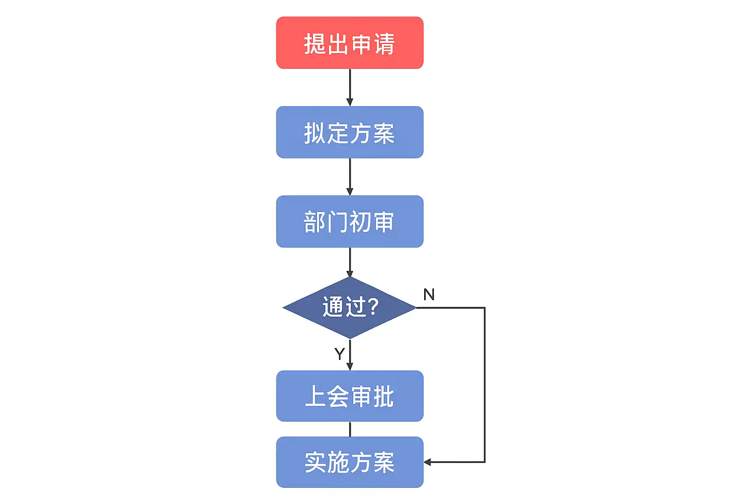 | 矩形 | 具体操作或审批 | “填写申请”、“审批通过” |