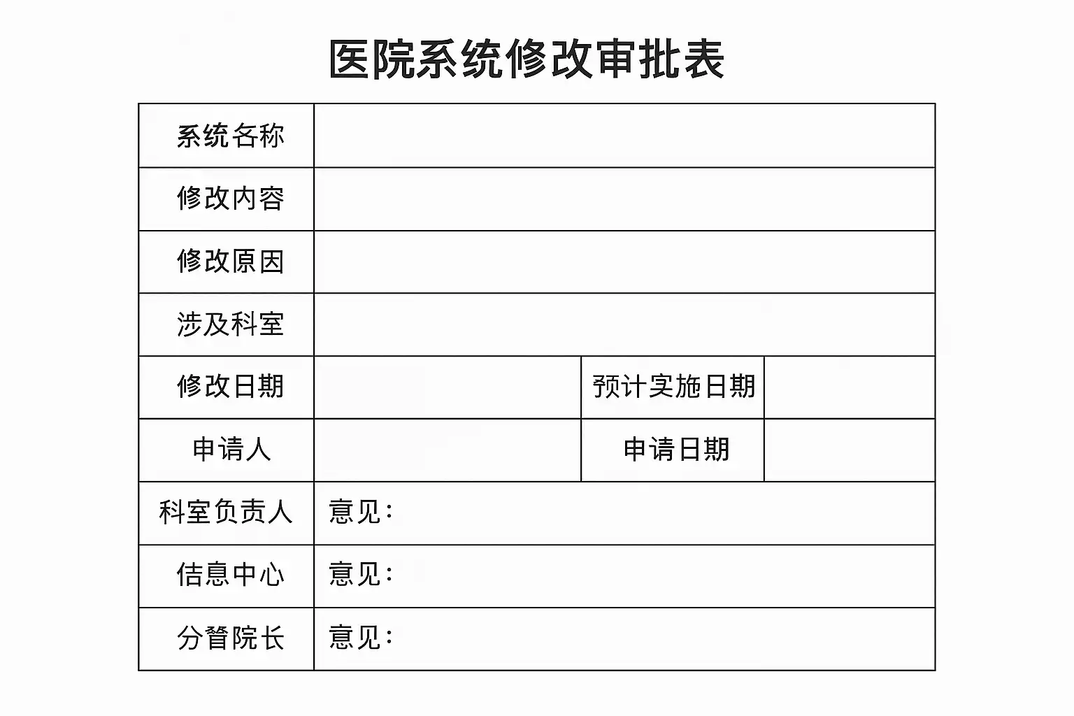 医院属于高度合规性管理单位,审批表填写需遵守医院信息系统管理办法及数据保护法规: