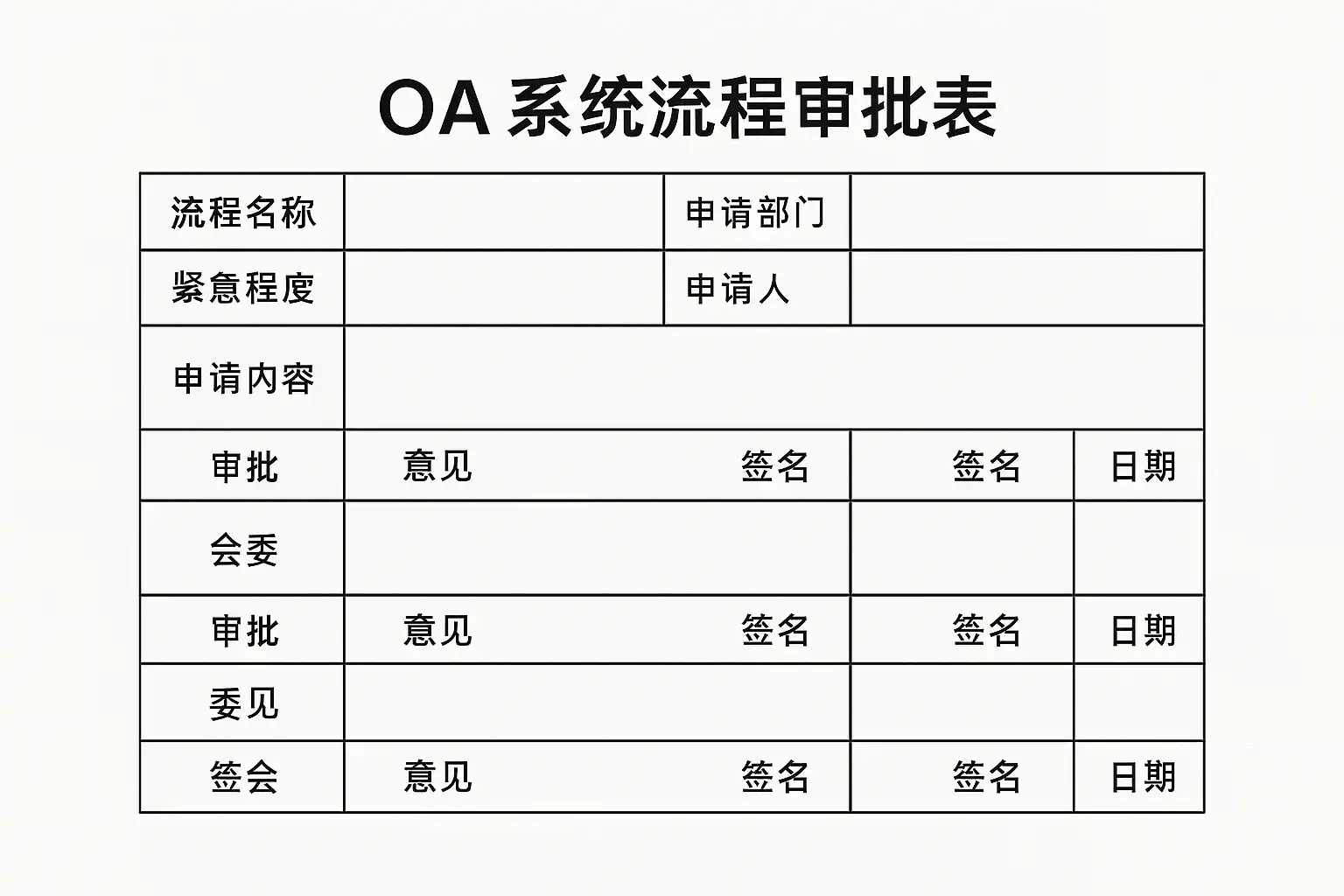 OA(Office Automation,办公自动化)系统的流程审批,指的是企业内部各类申请、报销、请假、合同等事项,通过系统化流程自动流转、审核和归档,确保管理规范、效率提升。流程审批表是流程启动、信息传递的重要载体,核心在于信息完整、节点明确、权限清晰。