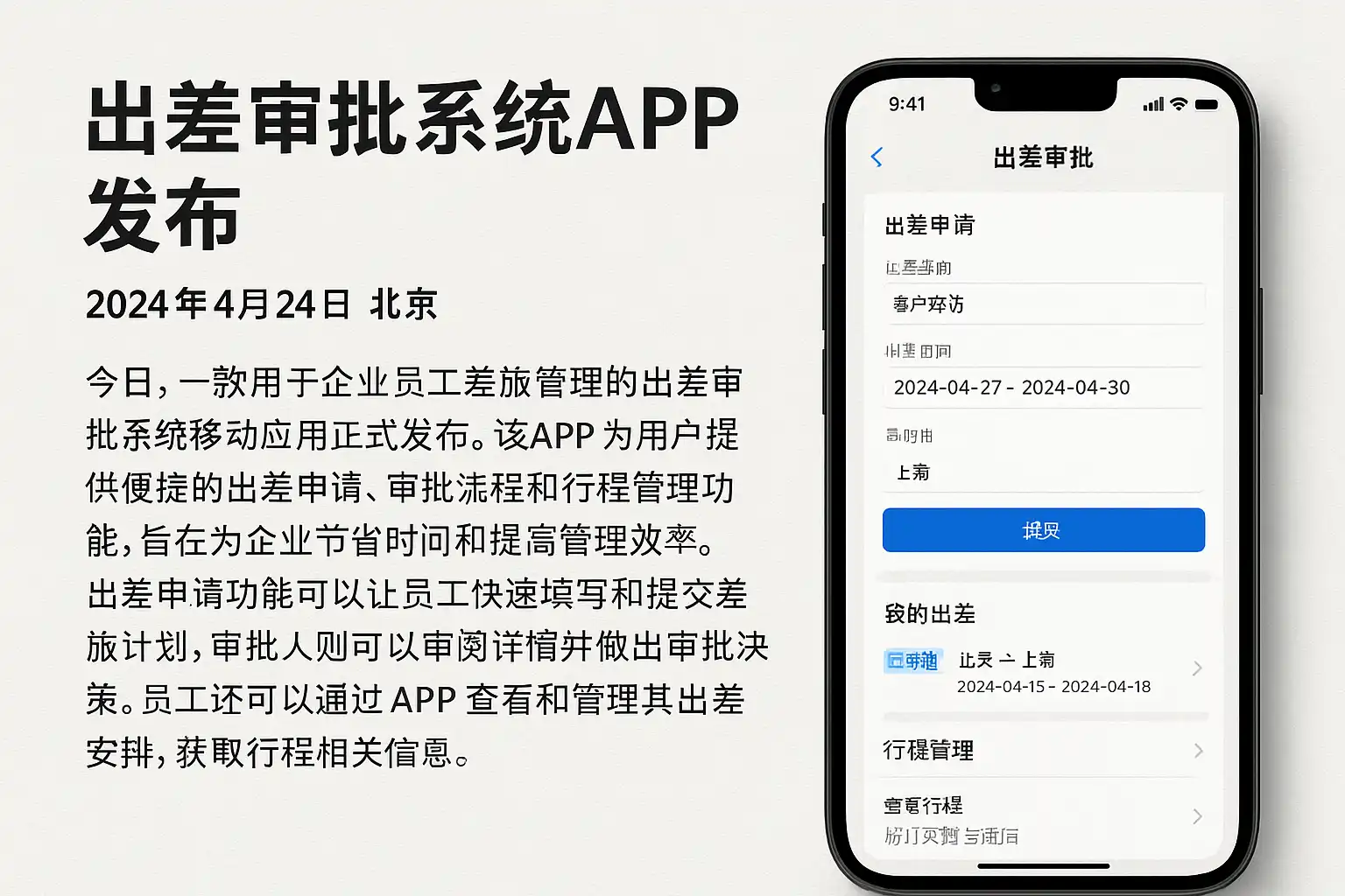 下面提供一个出差审批系统app新闻稿的结构化范例:
