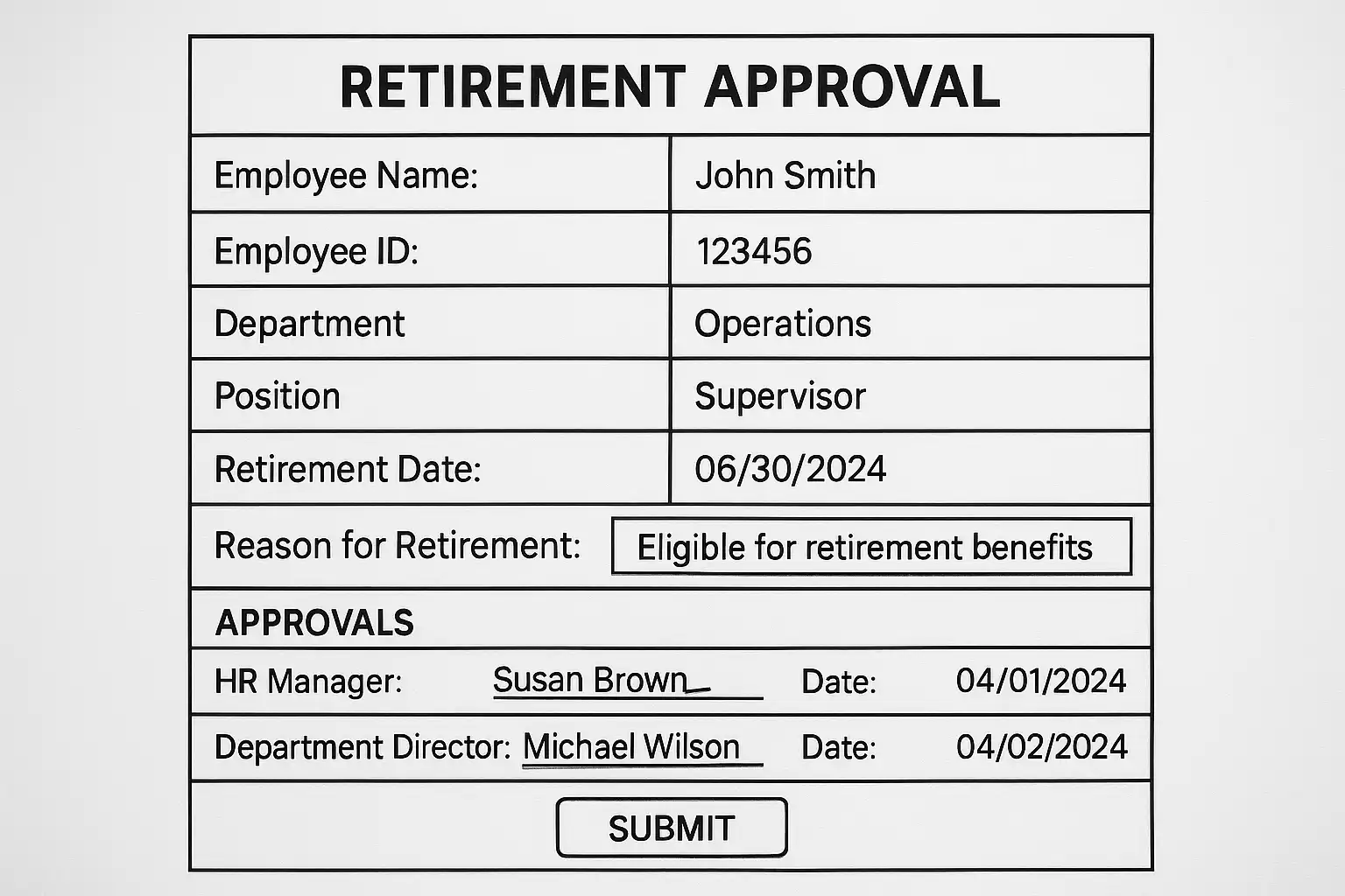 退休审批表设计中,如何通过结构化布局提升可读性和审批效率?